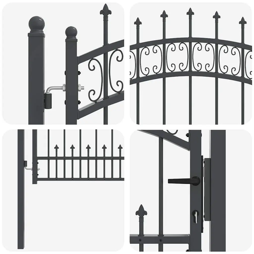 Vidaxl Fence Gate With Spear Top Black 40.6" X 29.5" Powder-Coated Steel