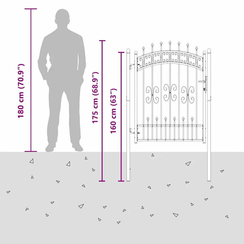 Vidaxl Fence Gate With Spear Top Black 40.6" X 49.2" Powder-Coated Steel
