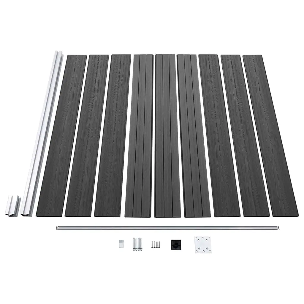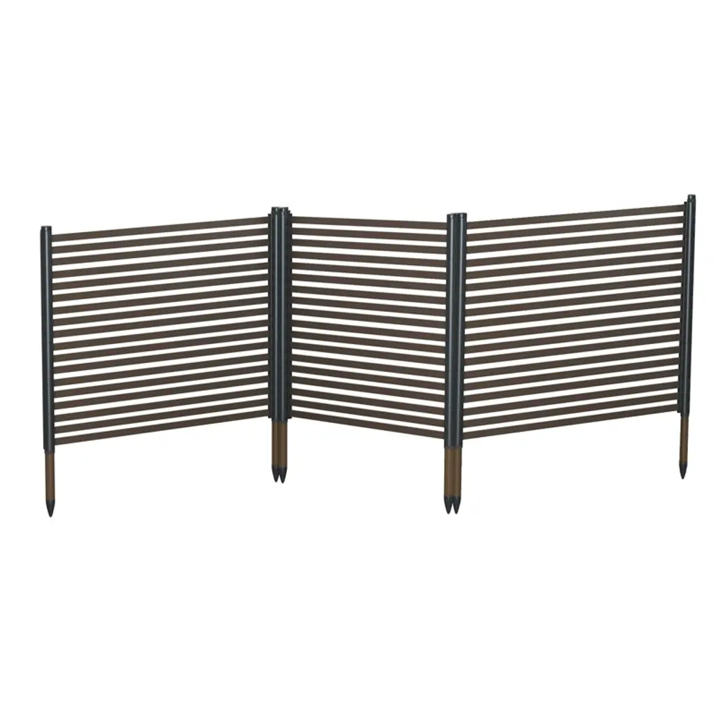 This fence panel set can be used as garden barrier or residential fence for privacy and security.Made of WPC (wood-plastic composite), the garden fence is durable and resistant to rot or rust. The garden barrier has a wood grain print on one side and regular print on the other side, so you can choose the design you like best. Thanks to the aluminum top profile, the fence boards can be tightly attached to each other, which increases their rigidity and strength against impact.Designed with the modular system, the fence boards are easy to install and allow you to expand the fence freely. These posts feature three slots, which enable you to assemble the fence in various ways, for example, in a straight line (180 degrees), right angle (90 degrees) or "T"-shape. The multifunctional steel feet can be fixed in two ways. The first one is by screwing them onto a surface, using the supplied anchor screws. The second way is by anchoring them into a cement base, using the ground spike (not included).