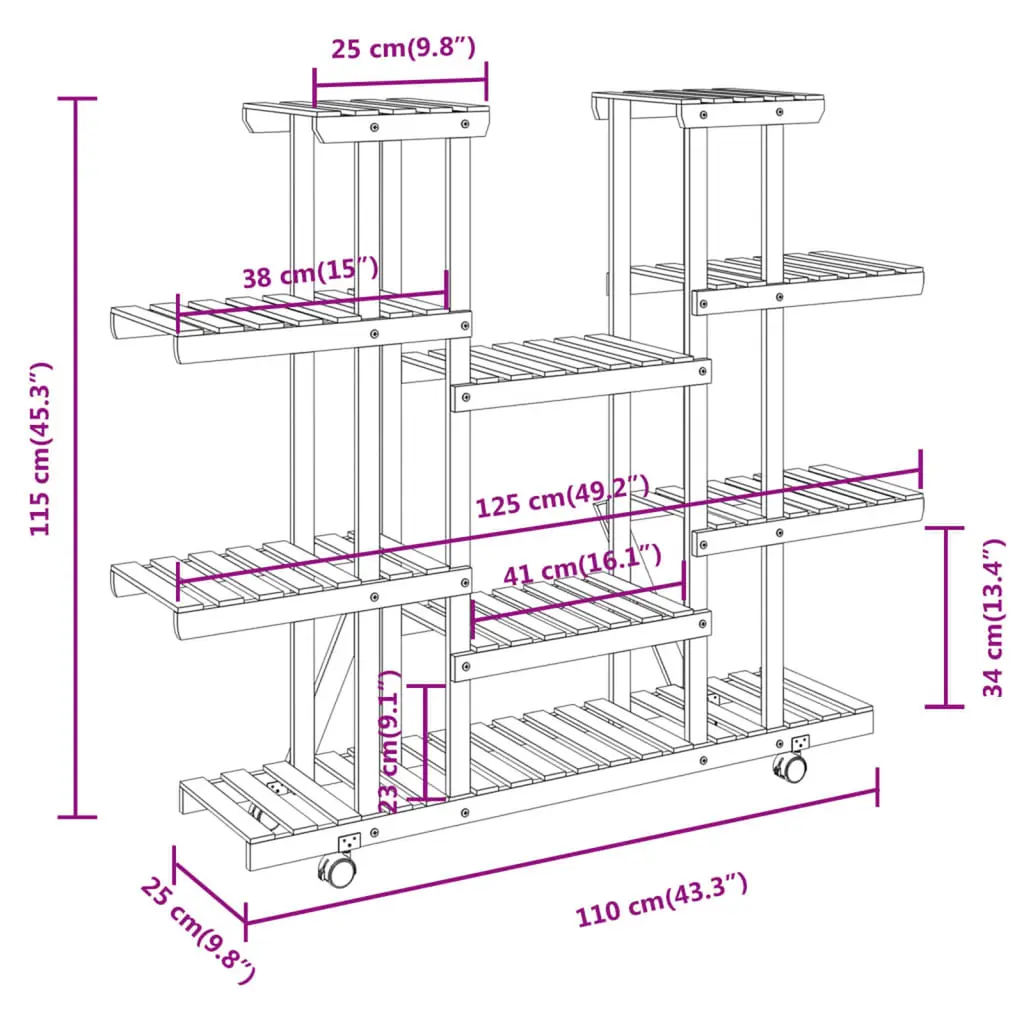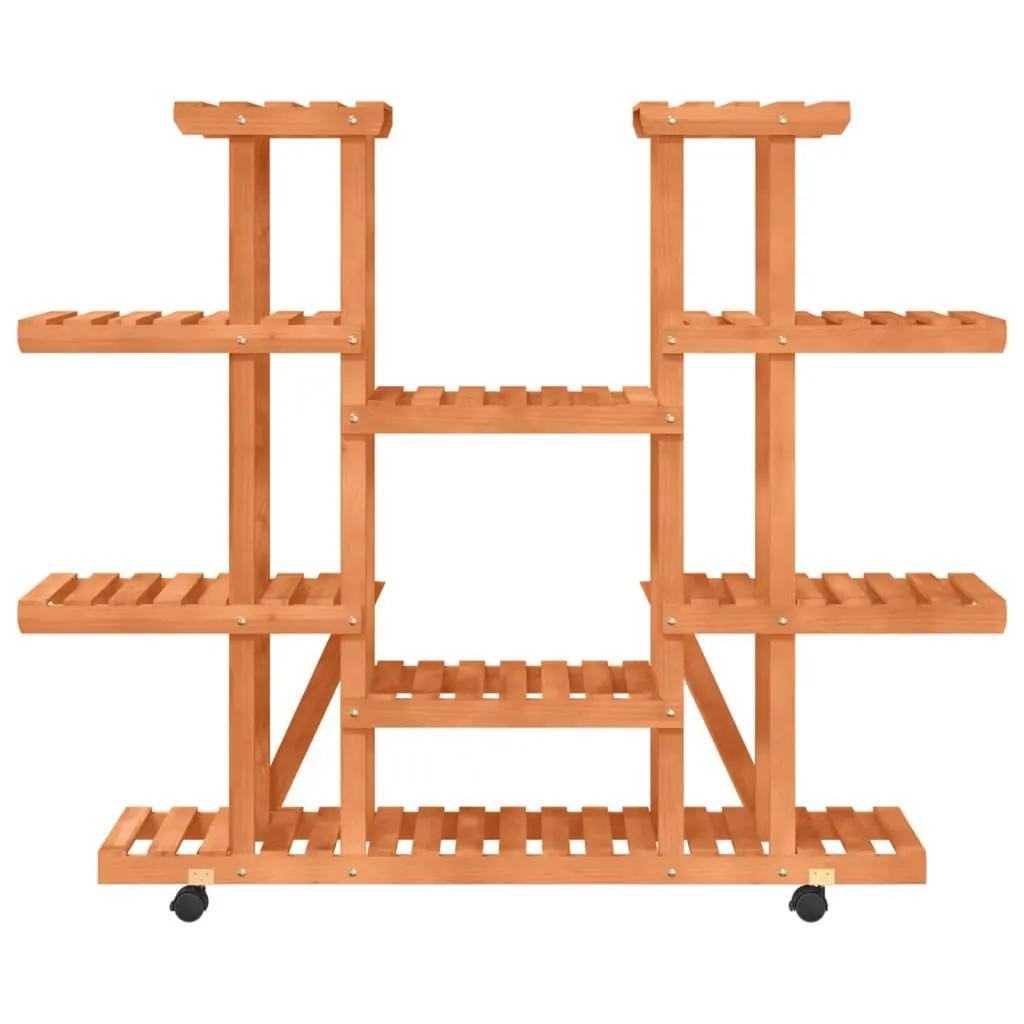Vidaxl Flower Stand With Wheels Brown Solid Fir Wood Multi-Tier Foldable