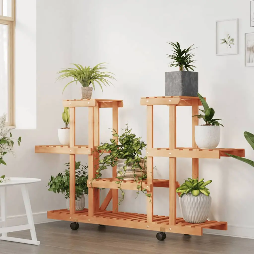 This flower stand is a fantastic addition to any home, showing off plants in a lovely way. Made from solid fir wood, its rustic style fits right in both indoor and outdoor spaces, making it a great piece for any setting. Adjustable Features: The rotatable setup lets you show off your plants in whatever direction works best. This makes it easy to care for them and also to find the best spot for them in terms of light. Ample Storage: With plenty of room across its shelves, this stand fits various plant sizes and pots. Enjoy having an organized and beautiful green space. Mobile Convenience: Four sturdy wheels on the bottom make moving this stand a breeze. Whether you're tidying up for company or just want to shift it for better sunlight, it’s easy to transport. Stylish Design: The rustic vibe showcases natural wood textures, adding warmth to any room. This way, it easily complements different decor styles. Versatile Use: Perfect for balconies or living rooms, this stand works as both a plant holder and a decor piece, enhancing the beauty of your space while staying practical.