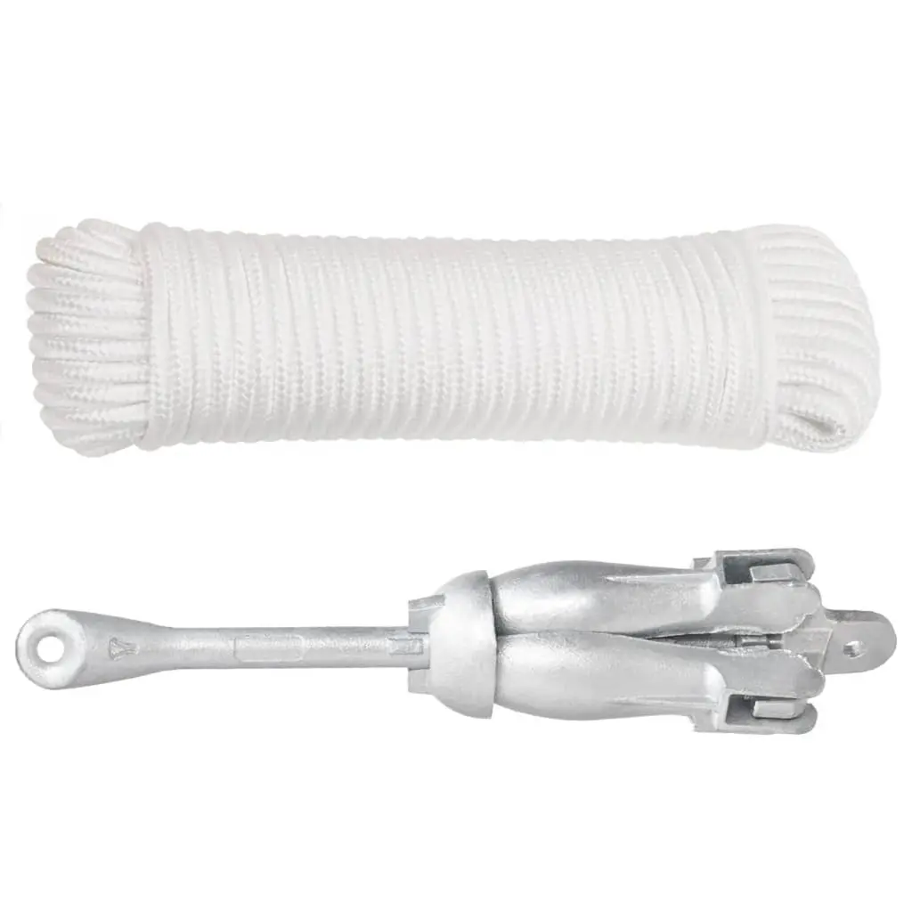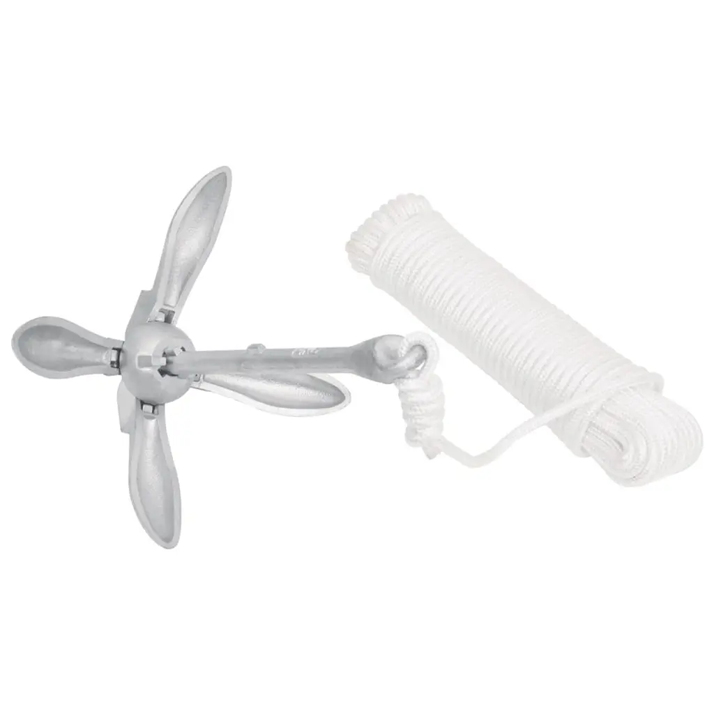 Vidaxl Folding Anchor With Rope Silver 17.6 Lb Hot Dip Galvanized Cast Iron