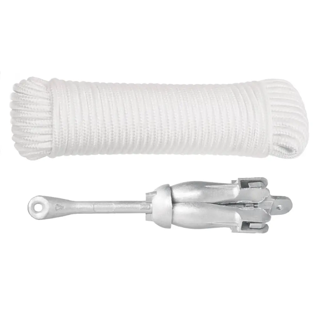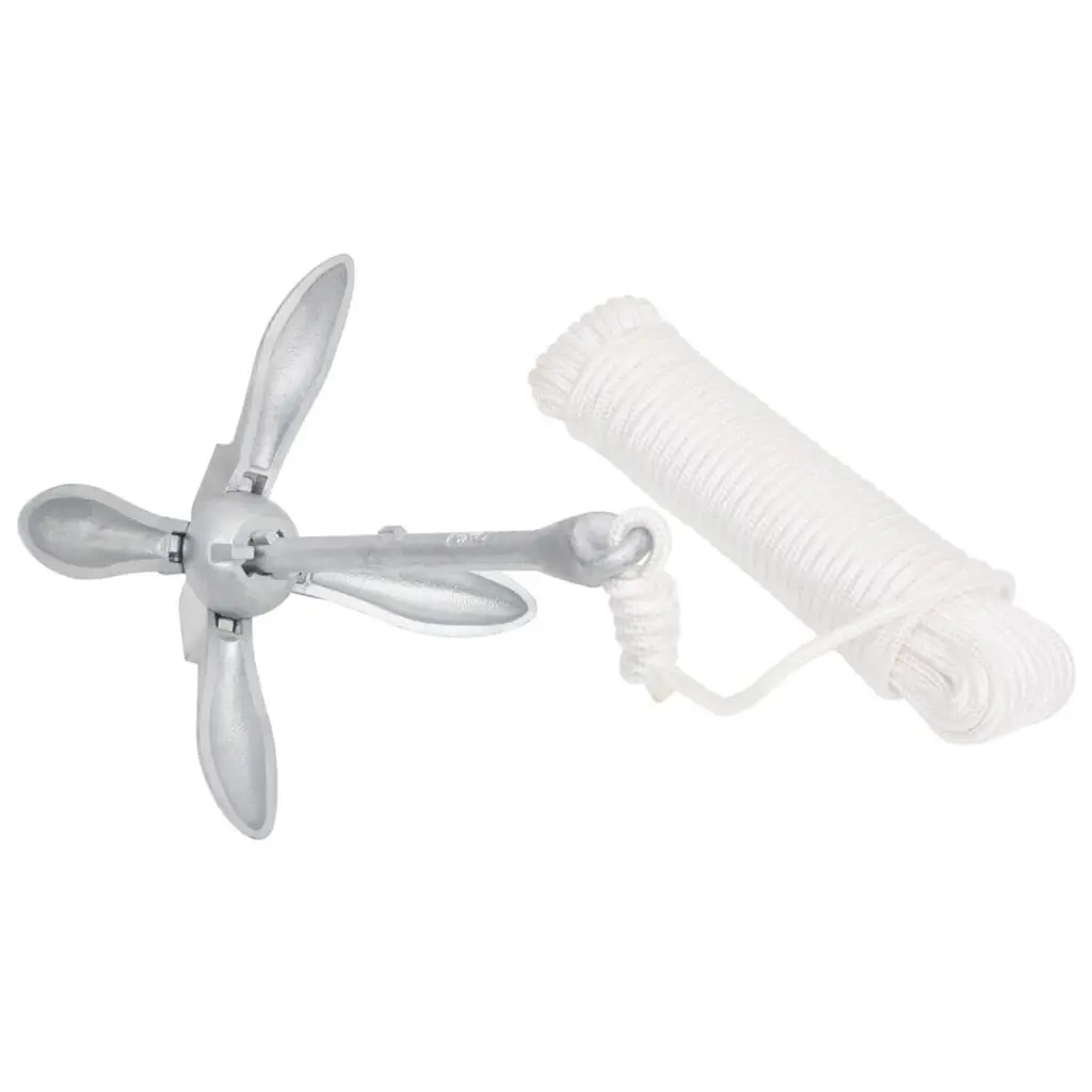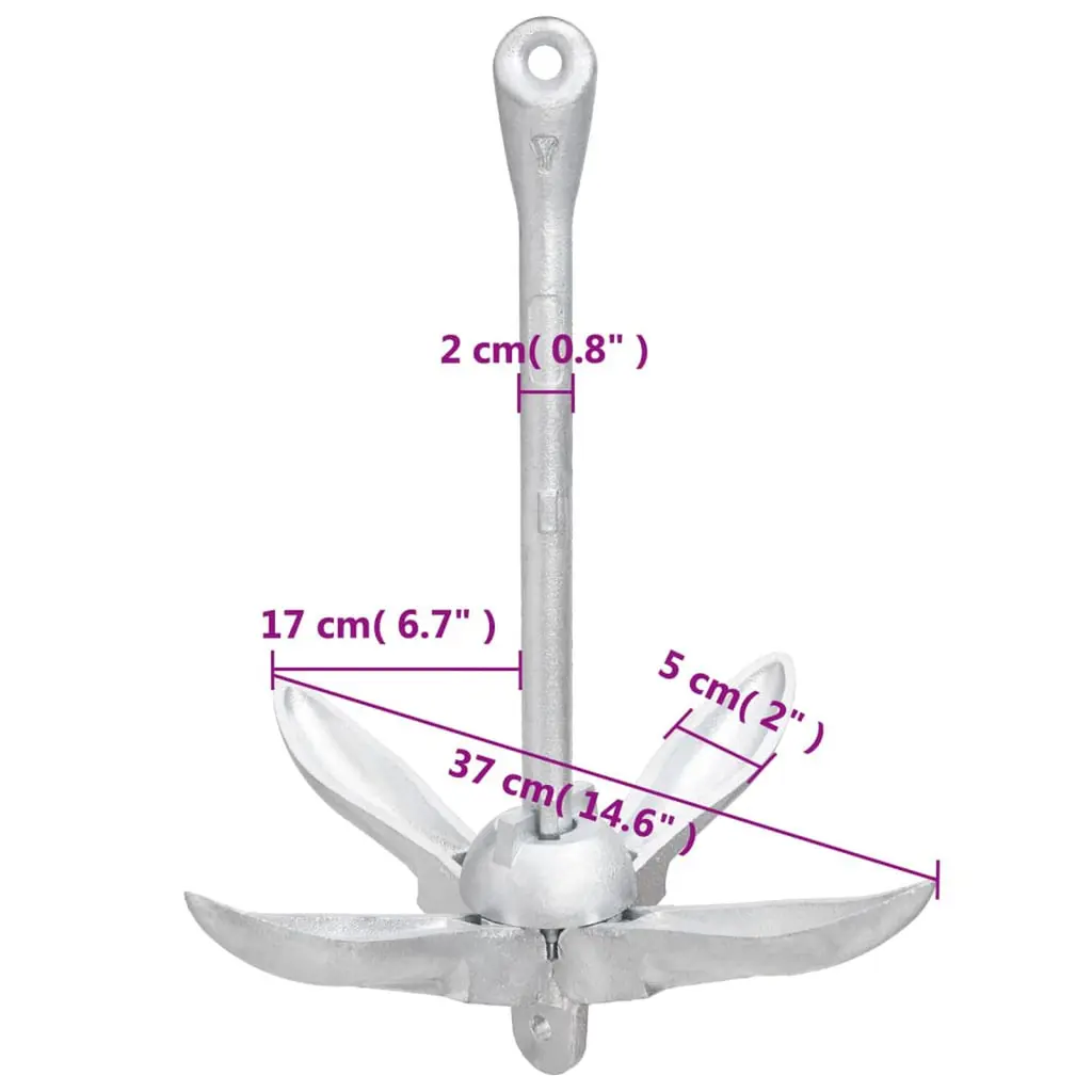 Vidaxl Folding Anchor With Rope Silver 7.1 Lb Malleable Iron