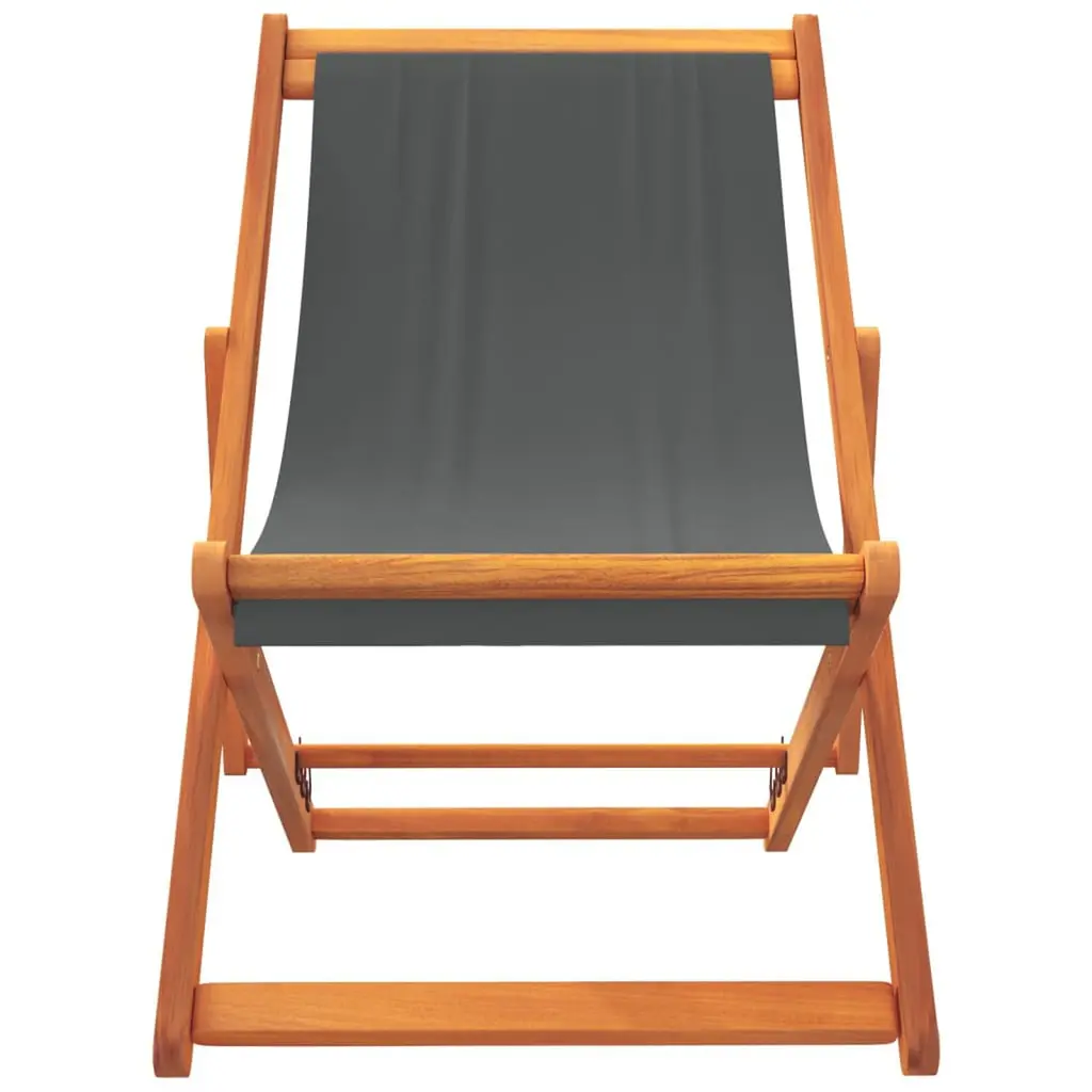 This folding beach chair is a great mix of comfort and practicality, perfect for all your outdoor events, from beach trips to chillin' in the garden. With a solid eucalyptus wood frame and breathable polyester fabric, it gives you both style and durability to really enhance your outdoor experience. Comfortable Seating: Experience unmatched relaxation with a roomy seat depth of 44.1 in and a width of 23.6 in, perfect for lounging outdoors.Multi-Use Design: This chair’s flexibility shines as it goes from beach days to camping trips or backyard hangouts, making it a must-have for any outdoor adventure.Stylish Gray Finish: The trendy grey color adds a suave touch to your outdoor decor, so you can enjoy a modern look wherever you sit.Easy Maintenance: The oiled wood finish protects against moisture while the polyester fabric needs little care, so you can focus on relaxing instead of cleaning.Easy Storage: Foldable for compact transport and storage, they fit nicely in your car or a storage spot, making them perfect for spontaneous getaways.