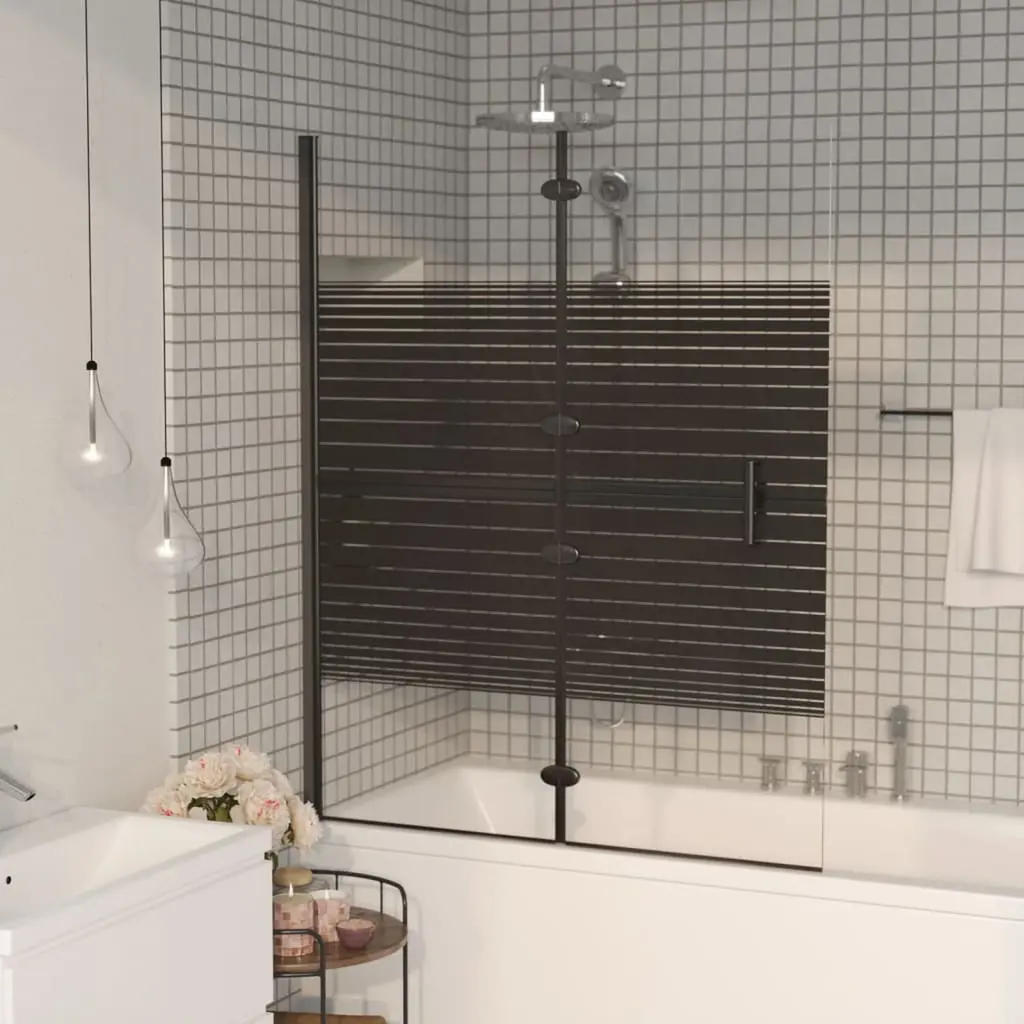 With a slick design, this folding shower enclosure adds a truly user-friendly addition to your bathroom.The aluminum frame and ESG (single-layer safety glass) panels give it a clean look, ensuring safety in the shower. Additionally, this shower screen also features a folding design for easy access.Note: The black strip is only designed for decoration.