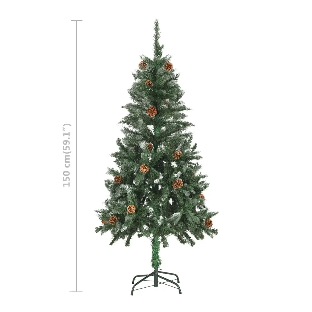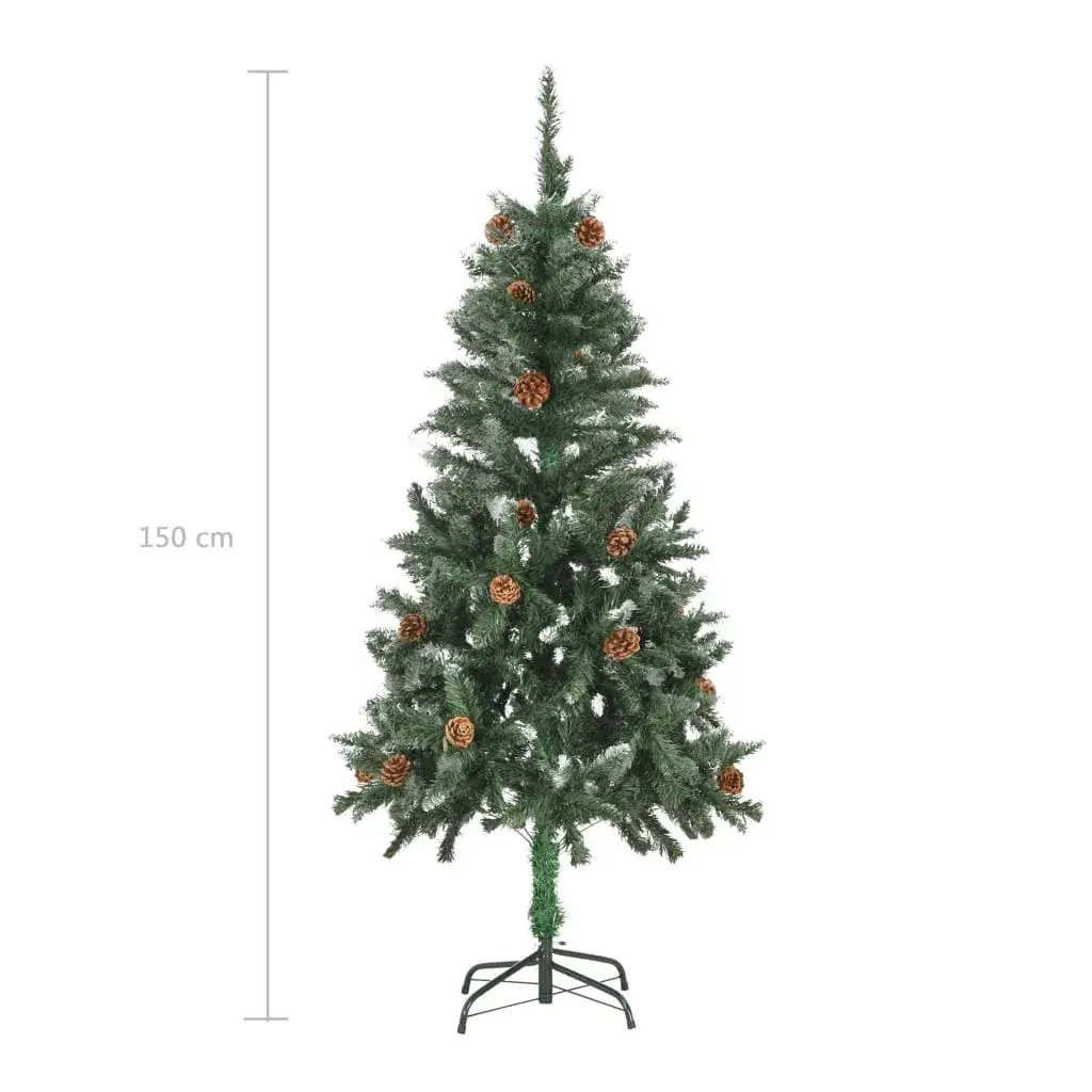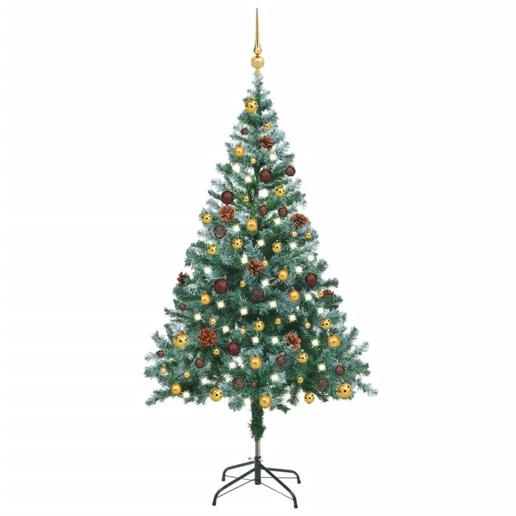 Vidaxl Frosted Christmas Tree With Leds&ball Set&pinecones 59.1" - 5 Foot - Gold