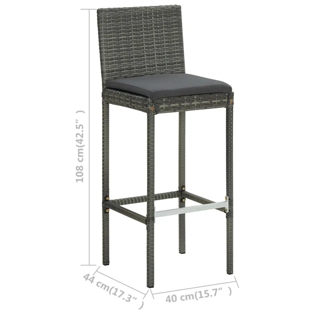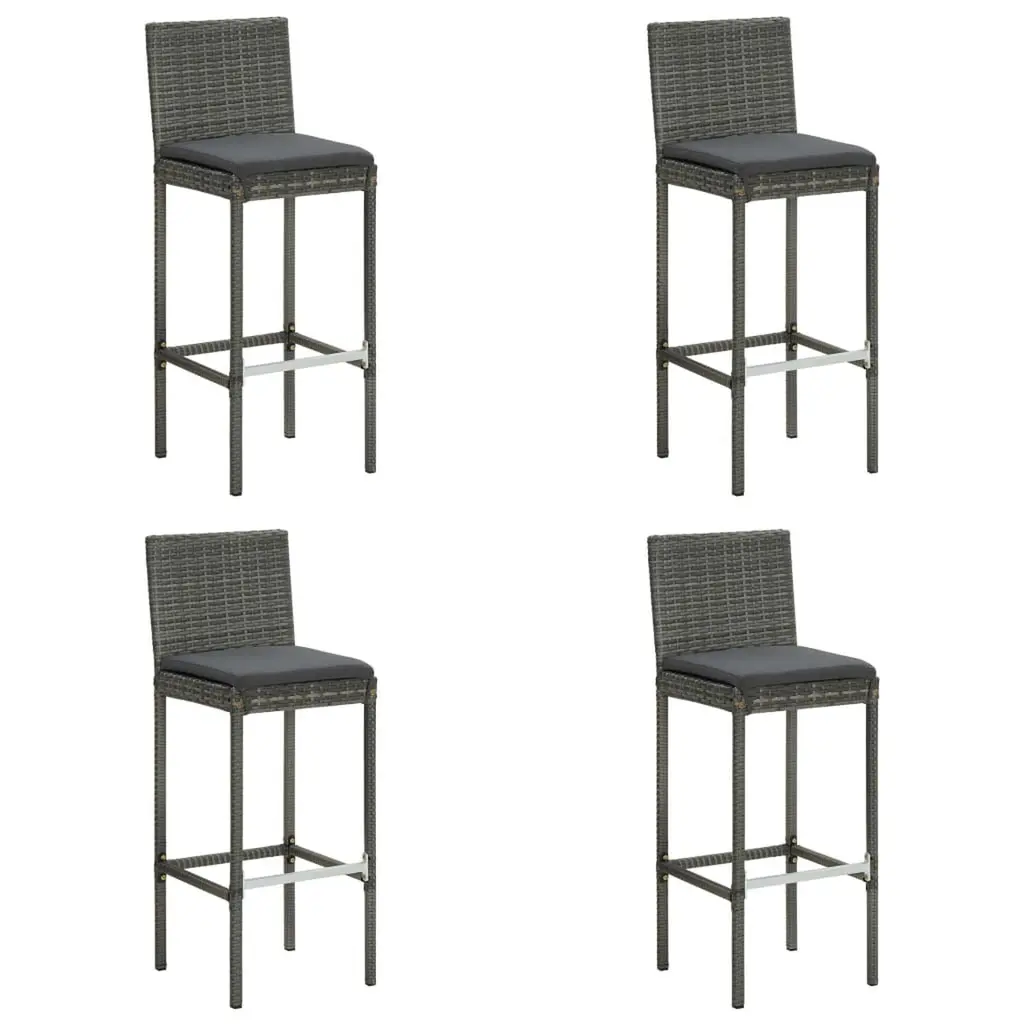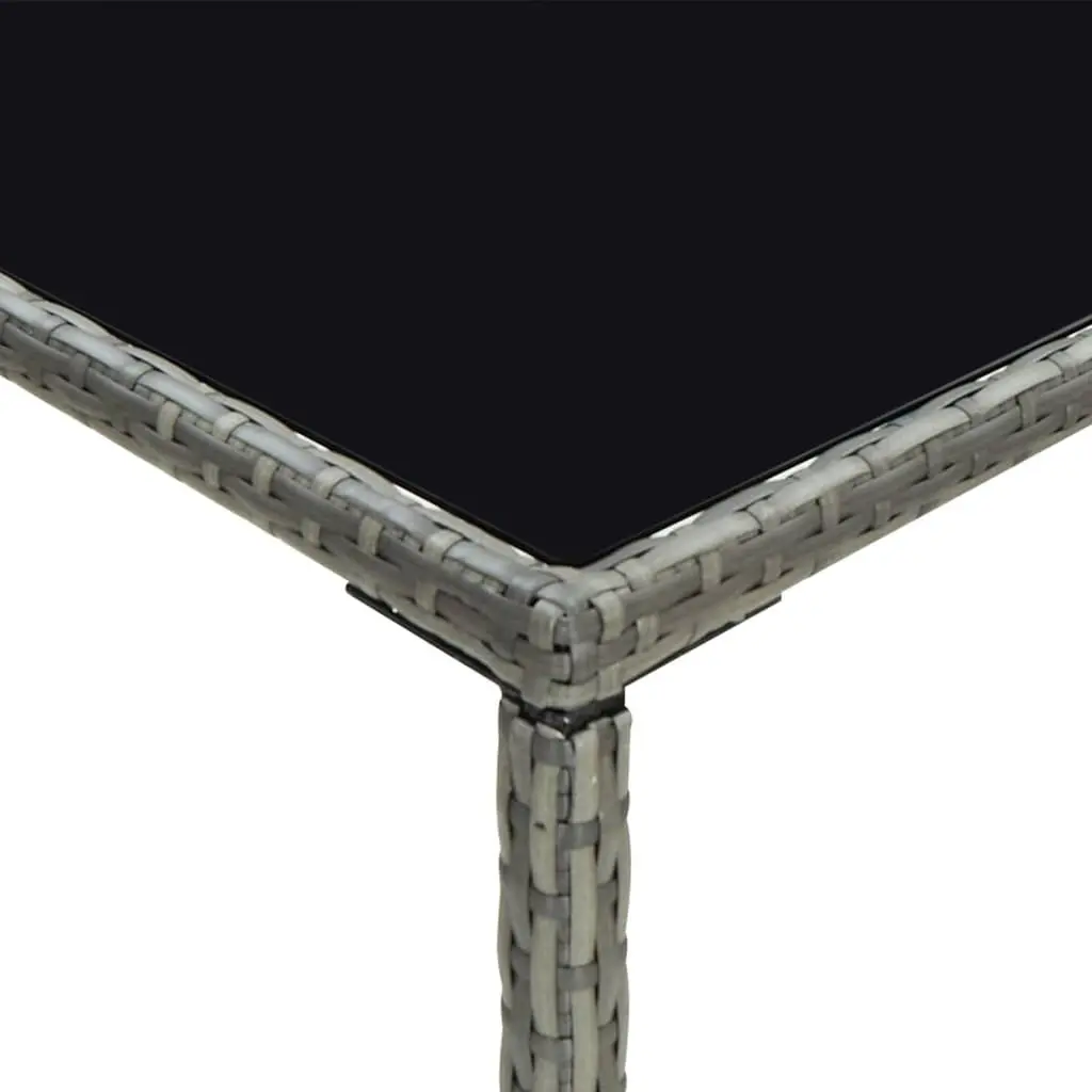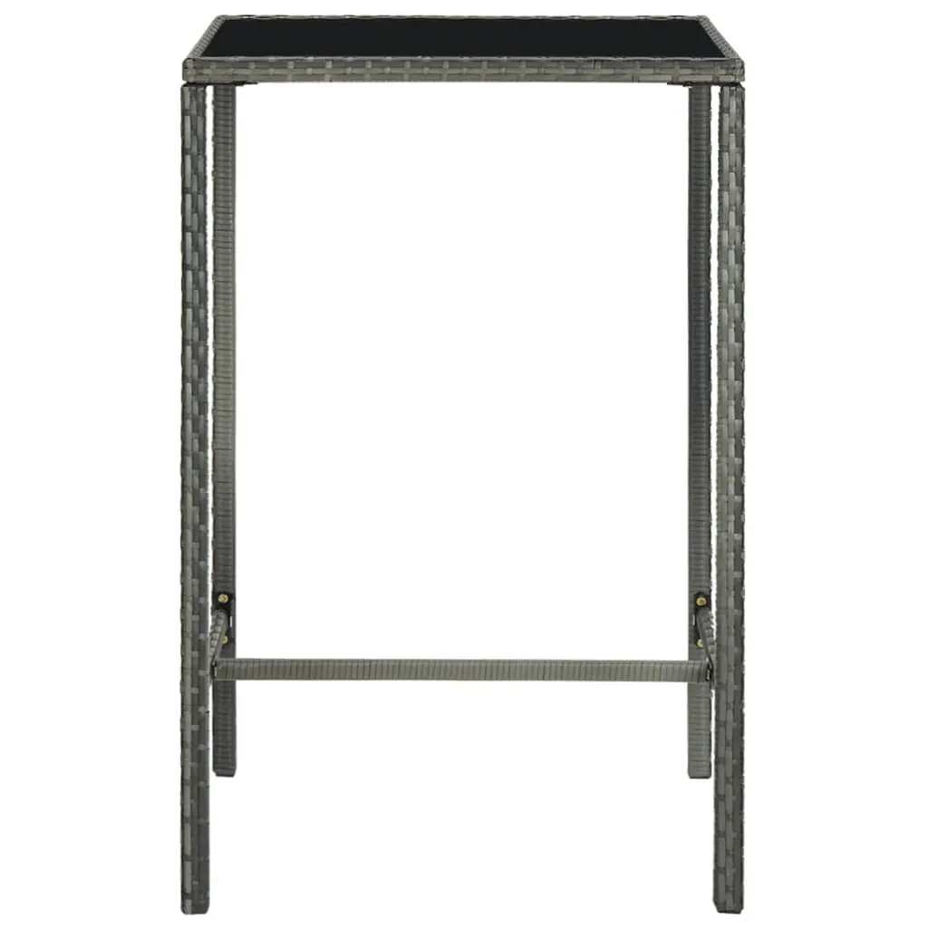 This 5-Piece Modern Garden Bar Set is the ultimate outdoor furniture for any balcony or patio. It's got style and function all wrapped up in a striking design. The set includes a table and four stools, all made from durable, weather-resistant materials. So, you can entertain friends and family comfortably, whether it's a sunny day or under the stars. Sturdy Materials: Built from powder-coated steel and PE rattan, this set is durable and made to stand up to outdoor living.Included Cushions: Comes with removable, water-resistant cushions that are a breeze to clean and provide a combo of comfort and convenience.Elegant Appearance: The sleek grey finish and tempered glass tabletop not only add a touch of class but also enhance your outdoor style.Multi-purposed Seating: Perfect for outdoor dining and cool drinks, this versatile set fits a bunch of different occasions.Compact Design: With its square shape, this garden set slots nicely into smaller spaces, making it easy to style in tight spots.