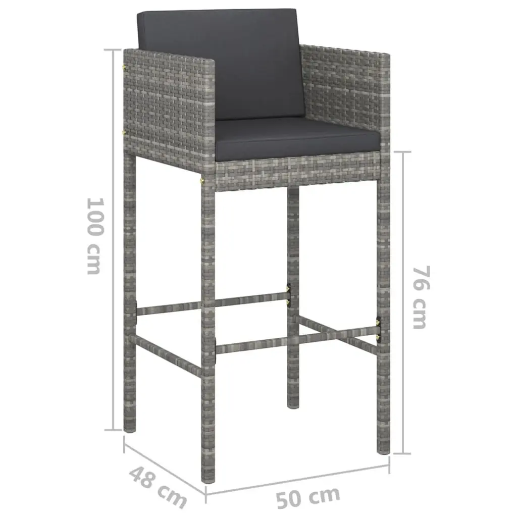 Vidaxl Garden Bar Set Grey Pe Rattan, Powder-Coated Steel Medium