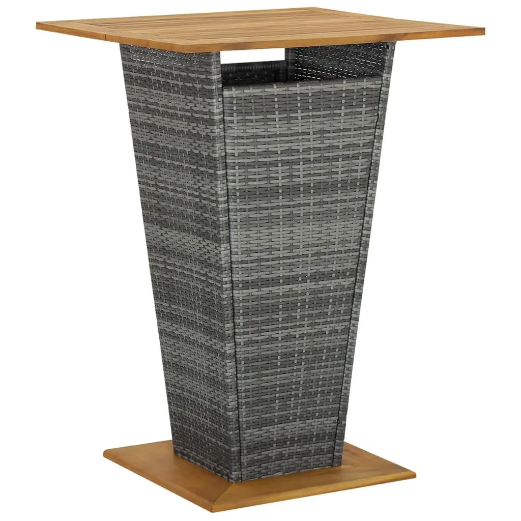 This 5-piece outdoor garden bar set is a great addition to any patio or garden, giving you a mix of style and comfort for hanging out with family or friends. It comes with a square table and four stools, designed with a sleek grey finish and durable synthetic materials, enhancing the overall modern look while ensuring it performs well outside. This outdoor bar set is made from PE rattan, known for its weather resistance, ensuring lasting appeal even in tough conditions.The lightweight structure of this set makes it easy to move, so you can configure or store it conveniently when not in use.Each stool comes with comfy cushions, ensuring a great seating experience during long get-togethers and keeping your guests happy.The modern design features clean lines and a smooth finish, creating a stylish and inviting vibe for any outdoor setting.With a sturdy steel frame, this set is built for stability and can support up to four people, perfect for dining, casual drinks, or just enjoying the outdoors.