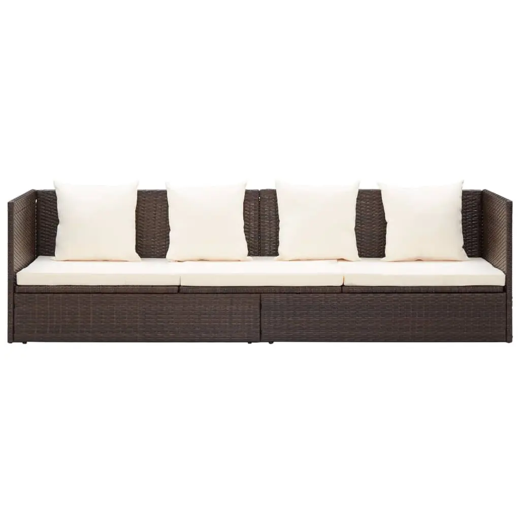 Vidaxl Garden Bed Brown Pe Rattan Foldable Cushioned Sun Lounger