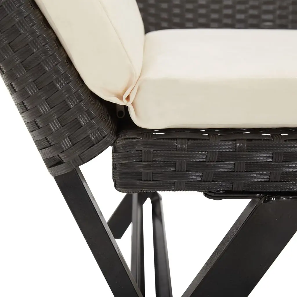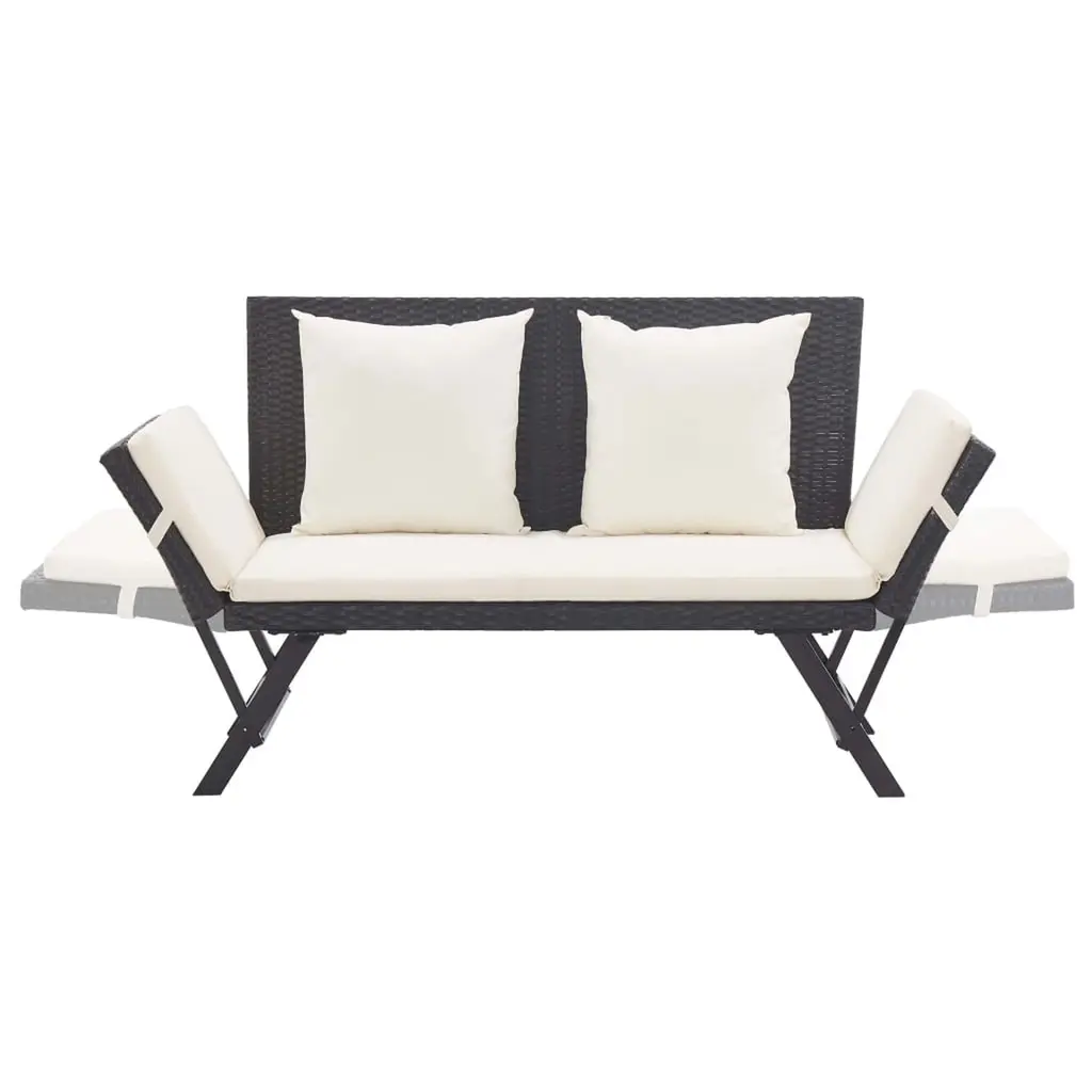 Vidaxl Garden Bench Black,cream White Poly Rattan 51.2-69.3 In Adjustable