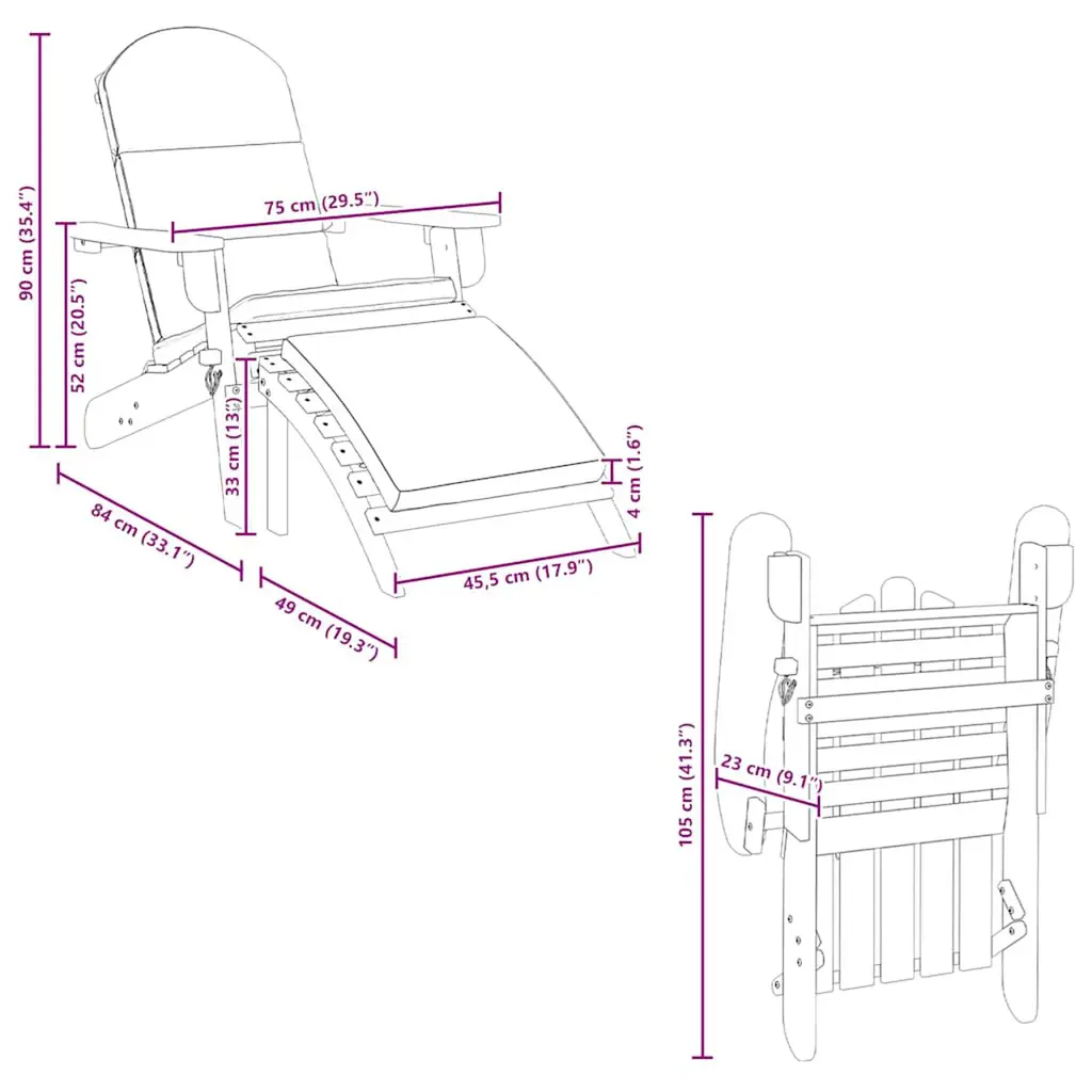 This Adirondack Garden Chair with Footrest is designed to boost your outdoor relaxation experience. With a classy combo of solid Acacia wood and comfy cushions, it's a fab fit for your garden or balcony and a great pick for your outdoor furniture stash. Ergonomic Design: The Adirondack chair has a comfy-shaped seat and backrest, so you can sit back for ages. The wide armrests are great for your drinks or stuff, letting you kick back even more outside. Durable Material: Made from solid Acacia wood, this chair stands strong against the weather, perfect for sticking around for ages. Plus, the wood looks good, adding some rustic charm to your outdoor area. Weather-Resistant Cushions: The cushions are done in outdoor fabric that can handle different weather, so you’re comfy no matter what. They also have zips for easy cleaning, which is a nice touch for keeping things tidy. Foldable: This chair folds up nicely for quick storage and easy transport. Whether you’re off to a picnic or just saving space in the off-season, this makes it super handy. Ideal for Various Uses: Perfect for reading, enjoying your morning coffee, or soaking in the sun, this chair is just the right spot for your outdoor fun. It's made to keep anyone comfy while they enjoy the great outdoors.