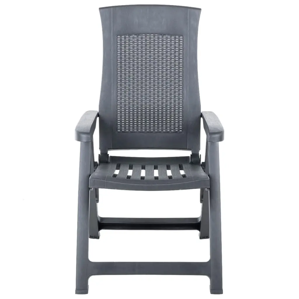 This Modern Anthracite Garden Reclining Chair set blends comfort, practicality, and modern style, making it a perfect pick for any outdoor space. Great for lounging, they’re awesome for warm evenings on the balcony or just soaking in the sun during a summer day. Adjustable Backrest: This chair features a multi-position backrest so you can set your sitting angle just how you like it. Whether you want to sit upright for a drink or lie back for a snooze, this flexibility makes your outdoor time better. Folding Design: These chairs fold up easily for compact storage or taking on the go. Perfect for those with limited outdoor space or who like to move their seating around. Weather Resistant: Made from synthetic plastic, these chairs can handle the weather, providing a durable seating option for outdoor use. They resist fading and damage from rain or sun exposure, so they'll last you a long time. Lightweight Construction: The lightweight nature of the plastic means these chairs are easy to move, so you can rearrange your patio or balcony setup without hassle. Perfect for parties or solo chill time!