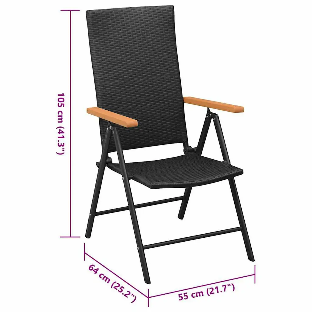 Vidaxl Garden Chair Set Of 2 Black Pe Rattan Standard Foldable