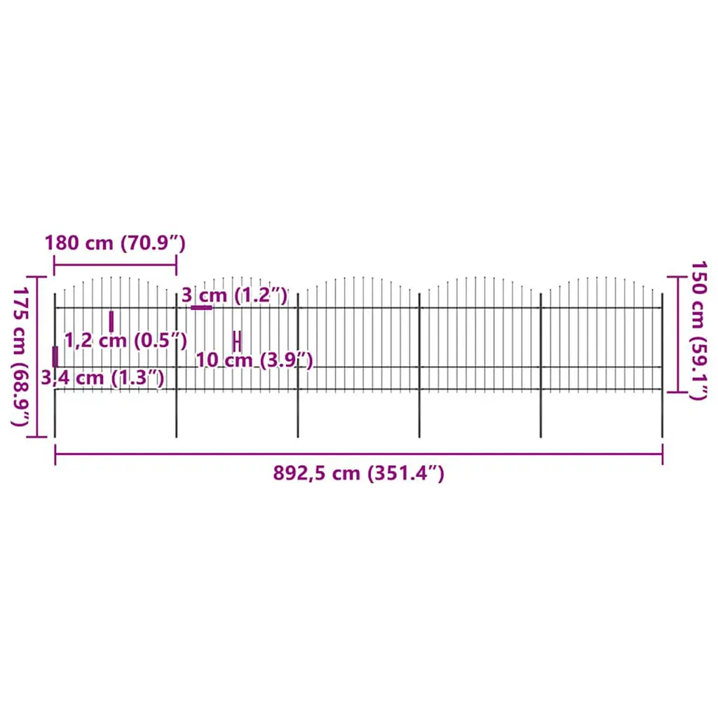 Vidaxl Garden Fence With Spear Top Steel 351.3"x68.9" Black