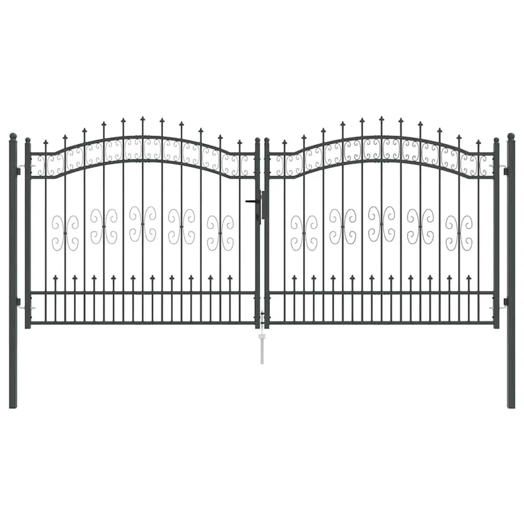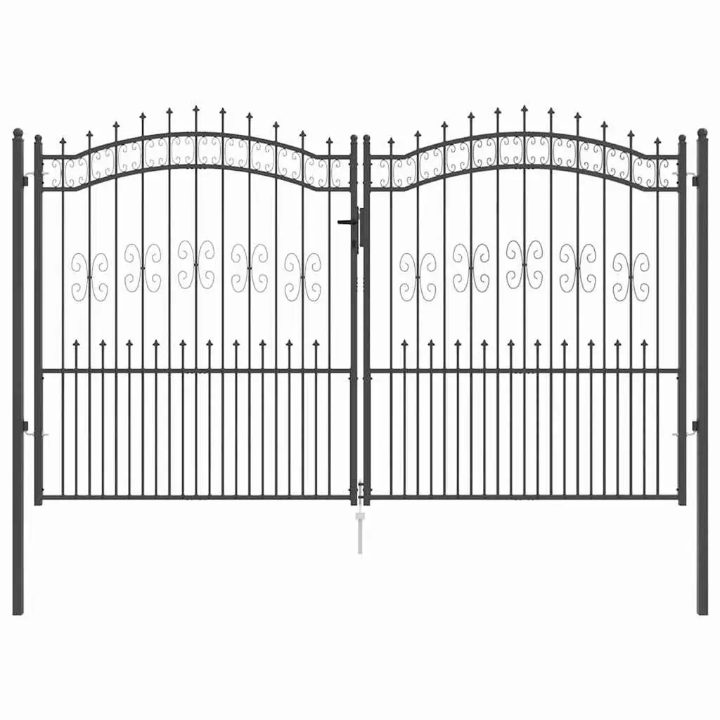 This ornamental garden gate with elegant posts makes an ideal entryway for the fence around your garden or patio.Durable material: The metal garden gate is made of wrought iron and powder-coated for lasting durability. Wrought iron is a type of iron that is tough, malleable and ductile, making it perfect for outdoor applications.Lockable system: The wrought iron gate comes with a bolt hinge for the quick lock to increase security.Post design: The wrought iron posts help you achieve a strong gate support system and make an attractive addition to your yard or garden.Elegant look: Elegant shapes and decorative accents make the fence gate a visual highlight of the outdoors.