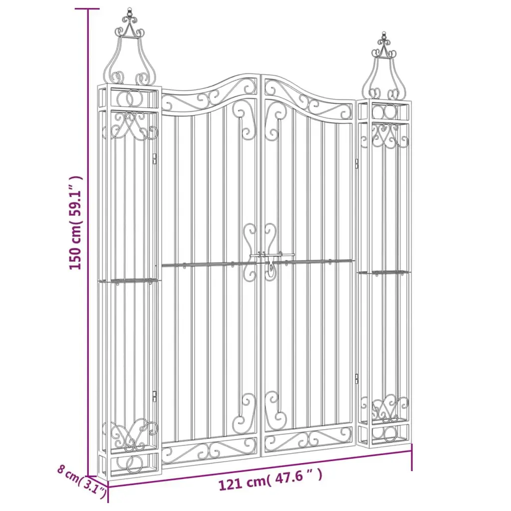 This ornamental garden gate with elegant posts makes an ideal entryway for the fence around your garden or patio.Durable material: The metal garden gate is made of wrought iron and powder-coated for lasting durability. Wrought iron is a type of iron that is tough, malleable and ductile, making it perfect for outdoor applications.Lockable system: The wrought iron gate comes with a bolt hinge for the quick lock to increase security.Post design: The wrought iron posts help you achieve a strong gate support system and make an attractive addition to your yard or garden.Elegant look: Elegant shapes and decorative accents make the fence gate a visual highlight of the outdoors.