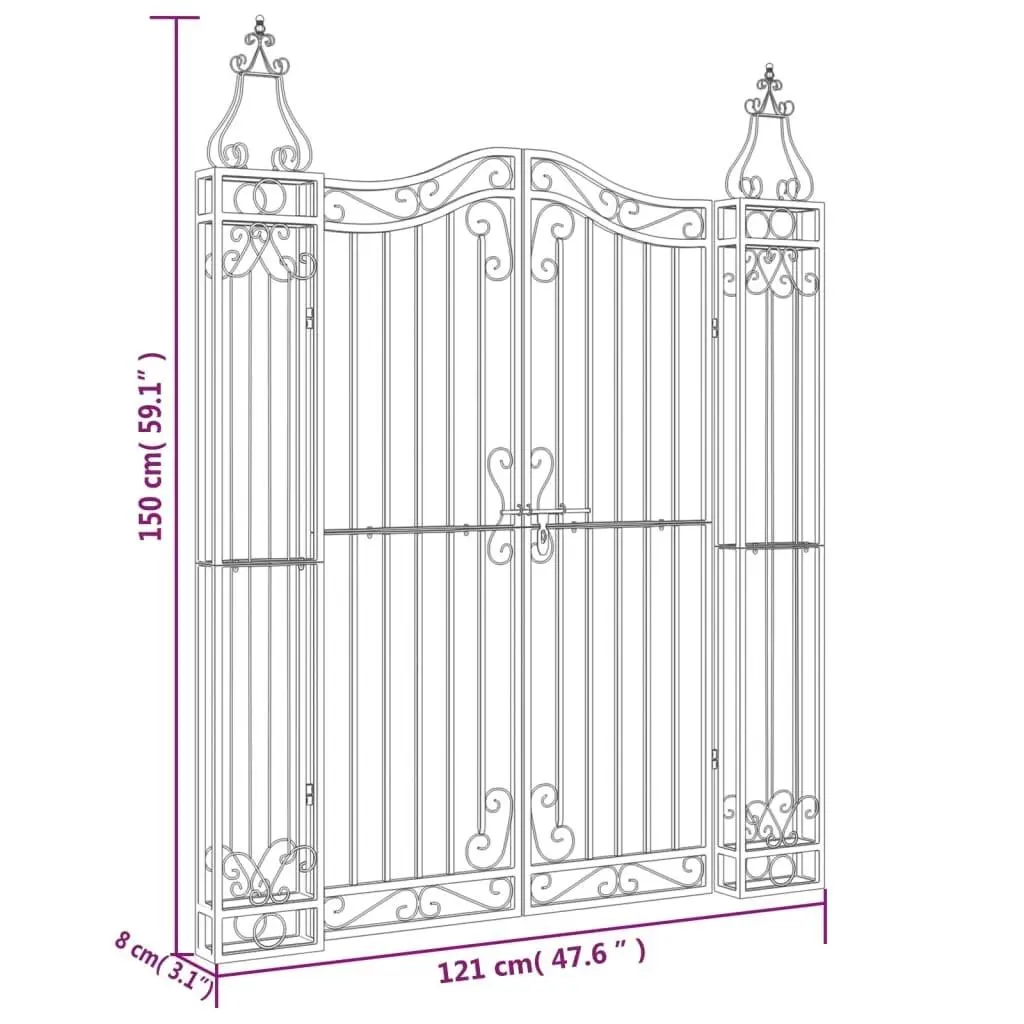 Vidaxl Garden Gate Ornamental Fence Gate With Bolt Hinge Trellis Wrought Iron - 47.6" X 3.1" X 59.1"
