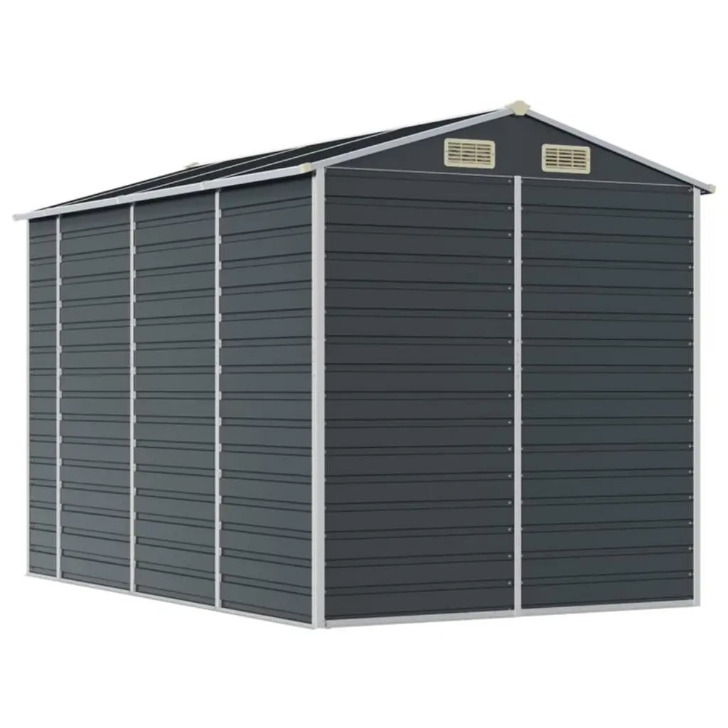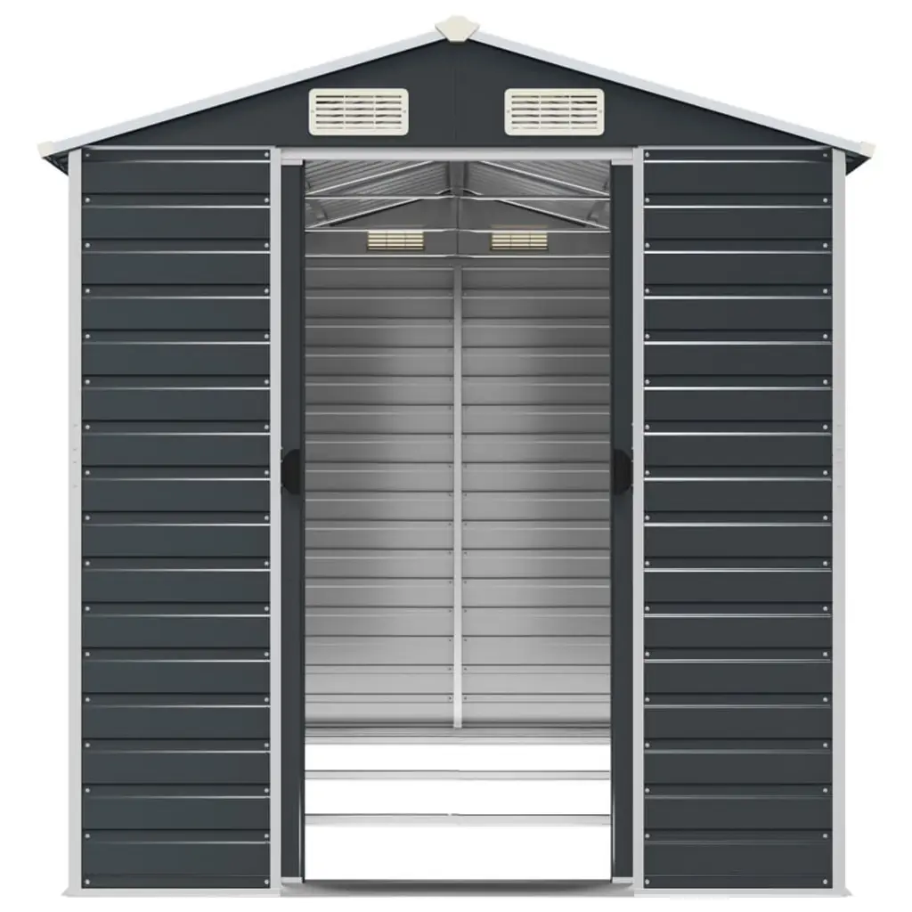 This versatile garden shed is designed to offer ample storage and modern style for any outdoor space. Crafted from galvanized steel, it features a durable, weather-resistant finish and a practical sloping roof for efficient water drainage. The shed is available in a variety of sizes and colors, making it easy to find the perfect fit for your backyard, garage, or workshop.Key Features• Durable galvanized steel construction for long-lasting use• Weather- and UV-resistant finish helps prevent rust and damage• Sloping roof design allows rainwater to drain quickly• Ventilation vents promote airflow and help protect stored items• Secure double doors with lockable handle for easy accessSpacious Storage• Plenty of room for tools, gardening equipment, outdoor furniture, and more• Easy to organize and keep your gear tidy and accessibleModern, Versatile Design• Clean lines and contemporary look suit a wide range of outdoor settings• Available in multiple sizes: 75.2" x 51.2" x 78", 75.2" x 84.6" x 78", 75.2" x 118.1" x 78", 75.2" x 151.6" x 78", 75.2" x 185" x 78", 75.2" x 218.5" x 78", 75.2" x 252" x 78", 75.2" x 285.4" x 78", 75.2" x 318.9" x 78", 75.2" x 385.8" x 78"• Choose from a range of colors: Green, Light gray, Anthracite, Brown, Light brownAssembly & Details• Assembly required; all necessary parts and instructions included• Ideal for outdoor use only• SKU: 3188231This shed is a practical solution for anyone needing secure, weather-resistant storage with a modern look. Select your preferred size and color to best suit your outdoor space and storage needs.