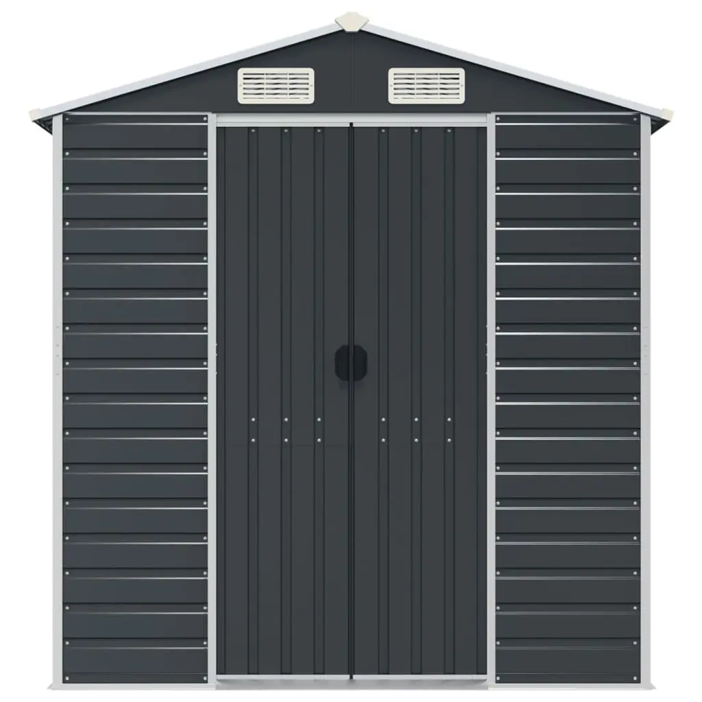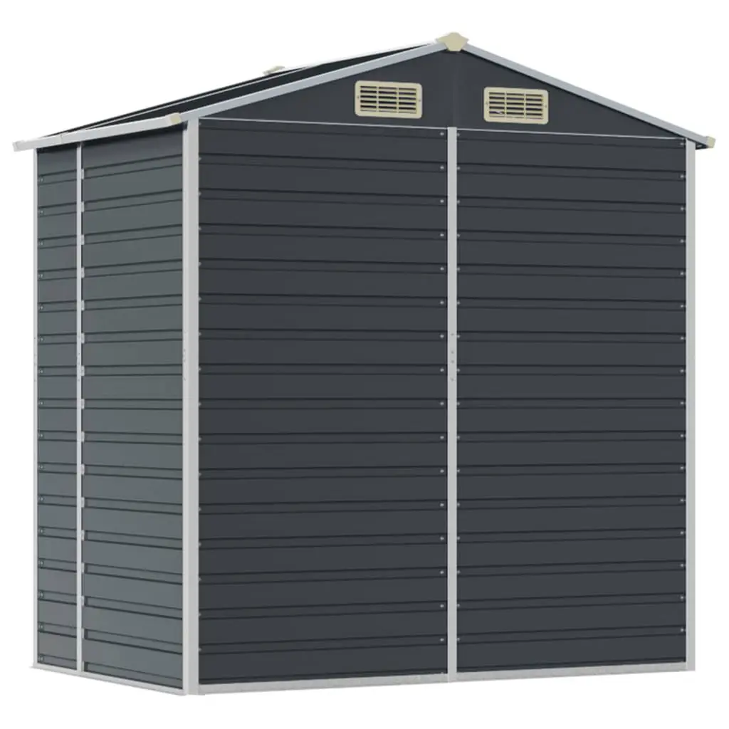 This garden shed blends modern design with top-notch functionality, making it an ideal outdoor storage solution. Built from high-quality galvanized steel in a striking anthracite color, its spacious interior allows for organized storage of various garden tools and seasonal items, perfect for gardeners and homeowners alike. Spacious Storage: Offering lots of space, this garden shed is the perfect spot to store garden tools, outdoor equipment, and seasonal must-haves. Enjoy having everything you need within reach while keeping your outdoor area tidy.Ventilated Design: The well-thought-out ventilation design keeps air flowing, helping maintain the condition of your stored items. This is key for avoiding dampness, especially for tools used for planting or maintenance.Durable Build: Made from sturdy galvanized steel, this garden shed is built to withstand the elements, giving you a long-lasting storage option. Its sloping roof helps with drainage, enhancing its durability.Modern Style: The sleek anthracite finish gives the shed a modern look that fits in well with any backyard or garden. Its simple design combines functionality with style, boosting your outdoor vibe.Easy Assembly: This shed comes with easy-to-follow assembly instructions, so getting set up is a breeze. You may just need two people and common tools like a screwdriver and wrench for a smooth build.