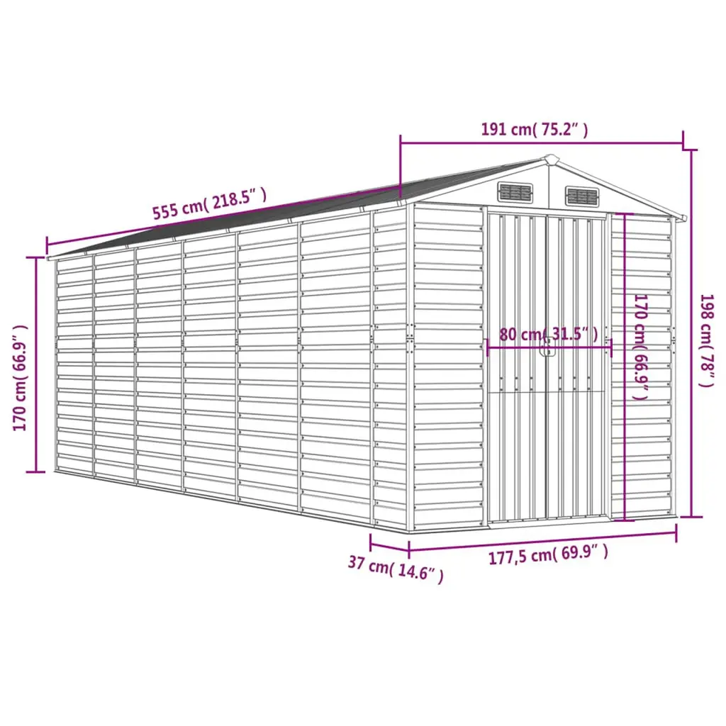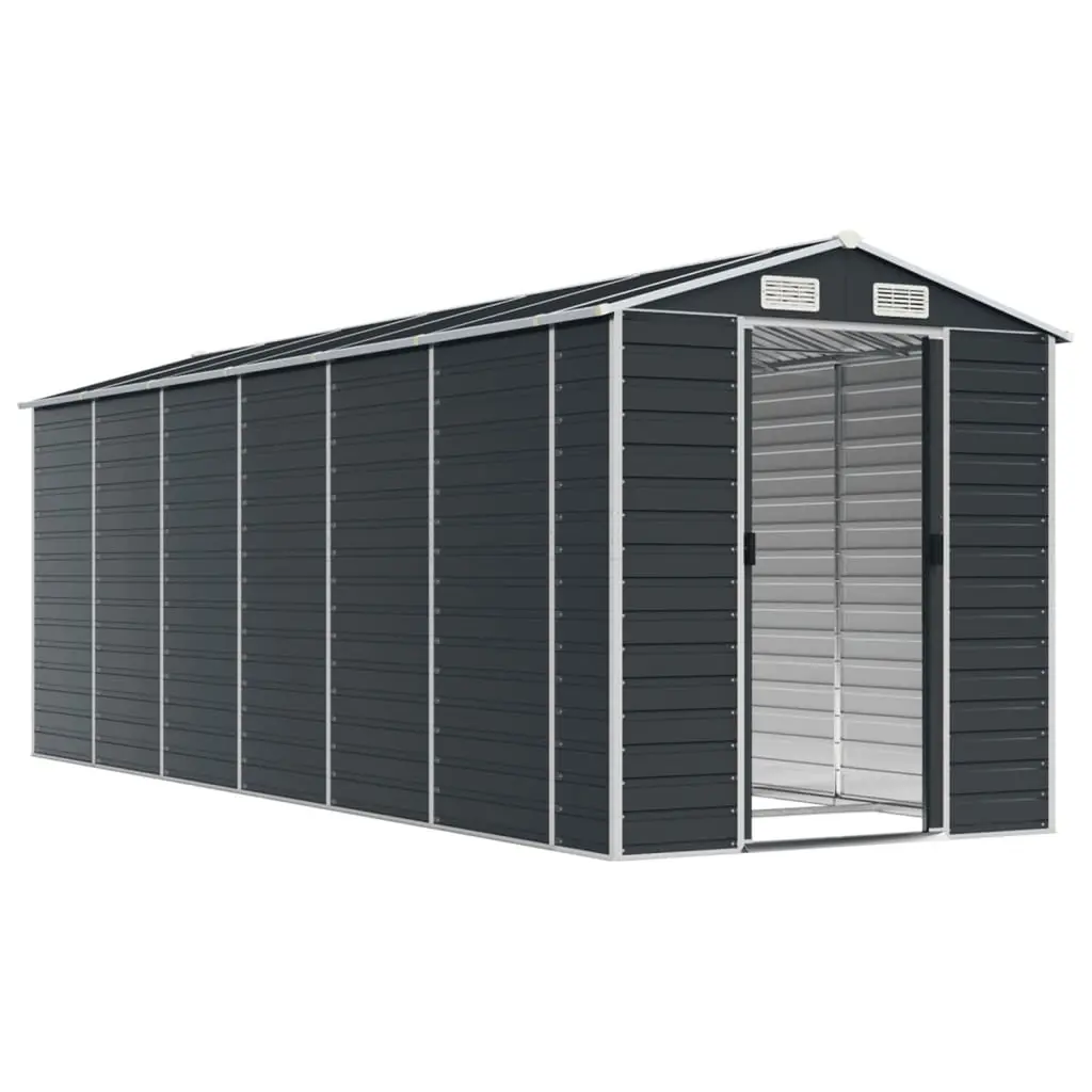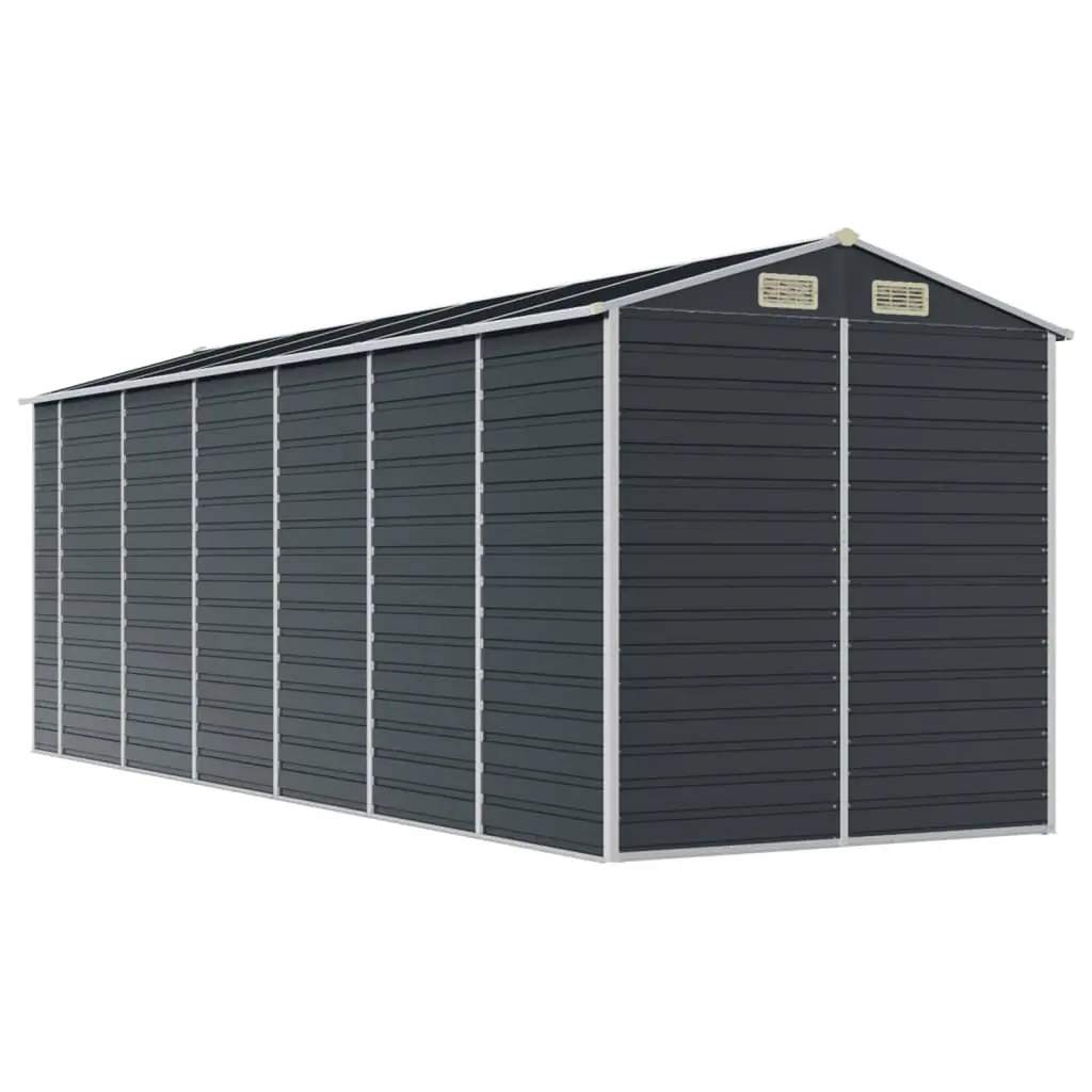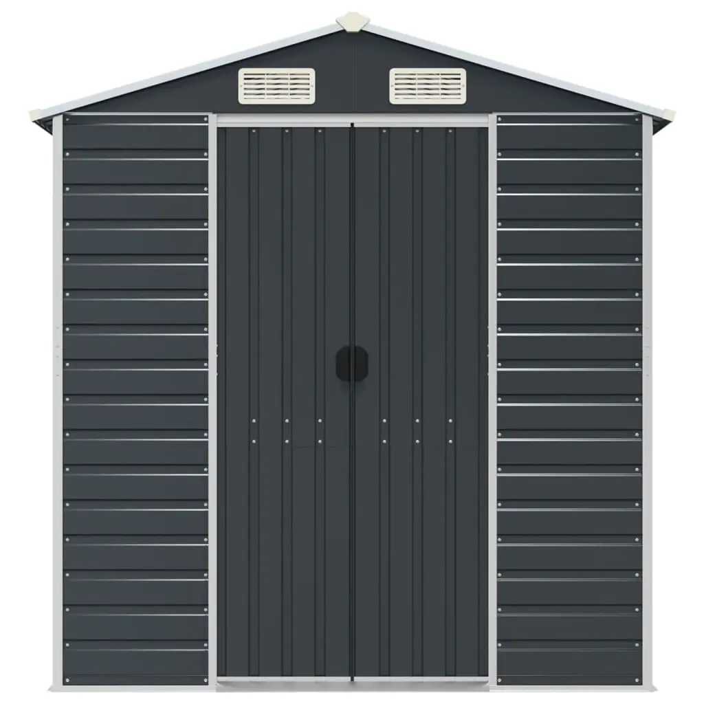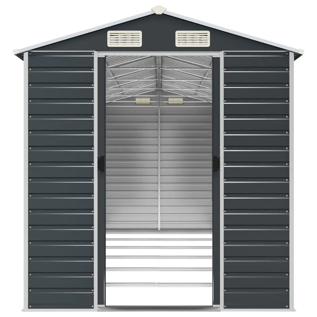 This large garden shed is perfect for anyone needing plenty of space to keep outdoor tools and equipment organized. Made from galvanized steel, the anthracite finish not only looks great but also keeps everything safe from the weather. Ample Storage Space: The shed provides loads of space for tools, gear, and more, keeping everything handy without the clutter.Durable Design: Made from top-notch galvanized steel, this shed is built to handle various weather conditions, ensuring long-lasting use.Ventilated Structure: Designed with vents for airflow, it’s perfect for storing garden items while preventing moisture and odors.Modern Aesthetics: Its sleek anthracite shade and smooth finish give it a stylish look that enhances your outdoor space.Easy Assembly: The shed comes with clear instructions needing just basic tools, so you can get your new storage space ready in no time.