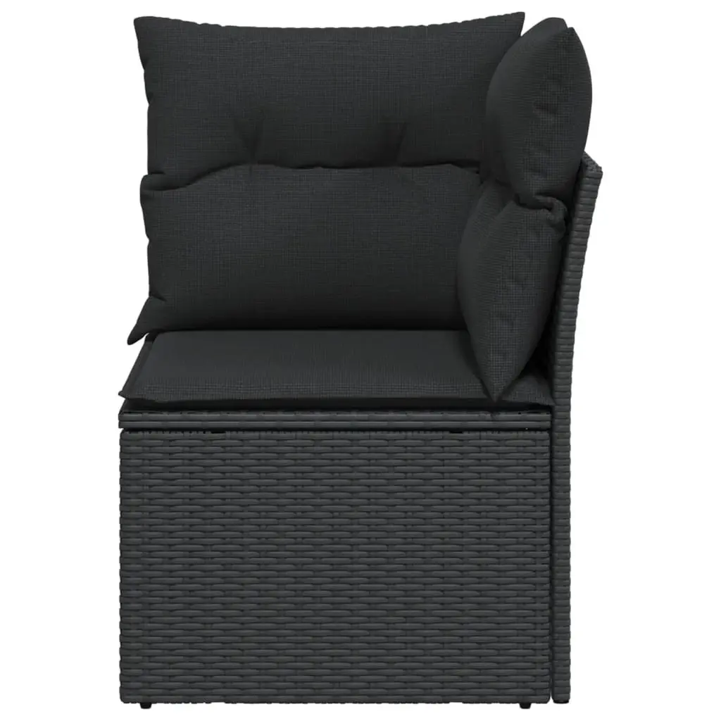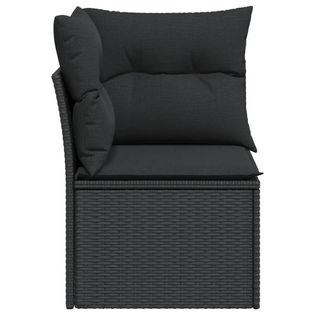 This modern garden corner sofa is a great blend of style and comfort, making it a top pick for outdoor relaxation. The sleek black poly rattan looks fantastic, built to handle outdoor weather, so your space stays stylish and welcoming all year round. The weather-resistant fabric ensures this sofa lasts, letting you enjoy it in all kinds of weather. It keeps its posh look, even in the sun and rain, making it a solid choice for outdoor living. This garden sofa has thick, removable cushions to make lounging comfy and easy to maintain. You can simply wipe down the cushion covers to keep them looking fresh, so your outdoor space stays stylish and practical. Built with a powder-coated steel frame, this sofa is strong enough to handle heavy use. Its solid construction means you can relax without worrying about safety or durability. The sleek black color combines modern design with functionality, making this sofa a striking addition to any garden or balcony. Its clean lines and minimal decorations make it a stylish fit for your outdoor decor. This sofa is spot on for different outdoor settings, whether on a patio, balcony, or in the garden. Its compact design makes it easy to find a spot, creating nice setups for relaxing or socializing.