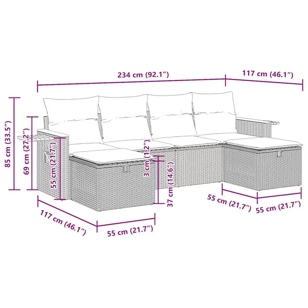 This 6-piece garden sofa set combines elegant design with practical features, perfect for outdoor relaxation and entertainment. Its modern aesthetics are complemented by durable materials, making it suitable for use on balconies, patios, or in garden settings, effortlessly enhancing your outdoor experience. Modular Design: The sofa set features a modular design that can be rearranged into various configurations, letting you create the perfect seating arrangement for your space and needs. This flexibility is super handy for outdoor parties, giving seating options for all occasions. Weather-Resistant Materials: Made with UV and water-resistant materials, each part is designed to hold up against different weather. You can enjoy your sofa set worry-free, even in tough outdoor conditions. Overall Storage: Each seat comes with a storage function, perfect for keeping cushions or other outdoor items tucked away. This smart feature not only saves space but also keeps your outdoor area clean and tidy. Stylish Modern Look: The modern design with clean lines enhances your outdoor area, creating a chic space for you and your guests. The black poly rattan and matching cushions make for a fantastic outdoor furniture setup. Comfy Seating: Soft seat cushions covered in weatherproof fabric provide a comfy experience, so you and your guests can lounge in style. Gather your loved ones and enjoy the sun with all the comfort you need.