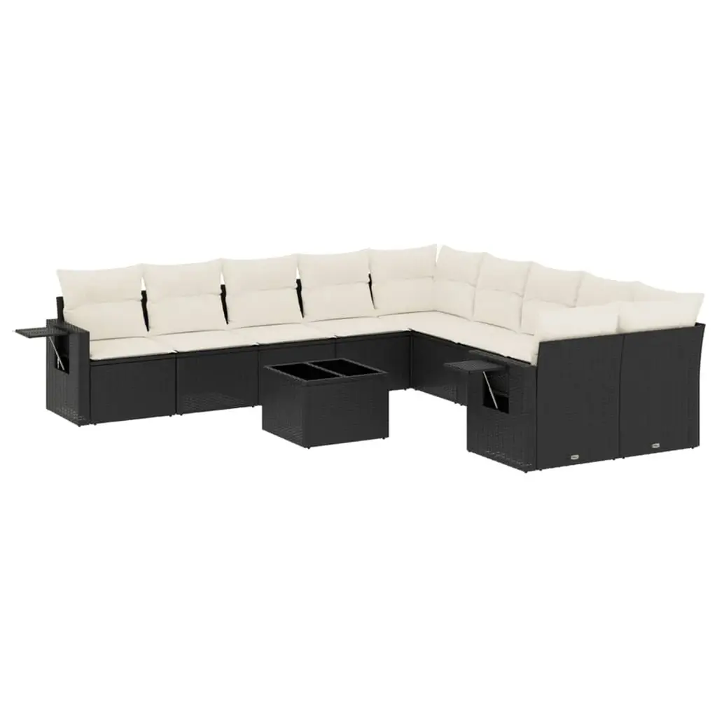 This 11 Piece Garden Sofa Set is a great addition to any outdoor spot, mixing style and practicality just right. The sleek lines and smooth texture of the modern design make it a comfy place to relax or have a chat in your backyard or terrace. Modular Design: The modular setup lets you easily change things around to match your outdoor layout, perfect for hosting small get-togethers or larger gatherings in your garden or balcony. Storage Functionality: With clever storage under each seat, this sofa set makes the most of your space while keeping outdoor essentials organized and dry, enhancing the look of your area. Comfortable Cushions: Plush cushions come with removable, washable covers, adding comfort and style. Enjoy relaxing without maintenance worries, as they're easy to keep clean. Durable Materials: Made from high-quality PE rattan with a sturdy powder-coated steel frame, this sofa set is built to last in any weather. The UV and water-resistant features ensure it stays looking good for a long time, making it a reliable choice for outdoors. Spacious Seating: With room for up to 10 people, this sofa set is all about comfort and making space for social gatherings or quiet evenings outside, perfect for BBQs or just chilling with friends.