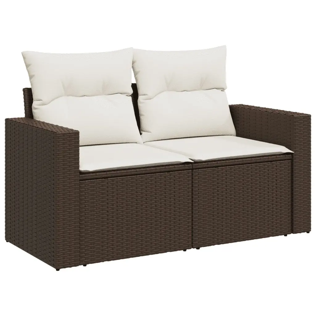 This 4-piece garden sofa set adds a bit of style and class to any outdoor space, creating a cozy hangout for chilling or entertaining. Its modern look mixed with weather-resistant fabric and sturdy materials makes it spot-on for balconies, sunrooms, or patios, creating a warm vibe for friends and family to enjoy comfortably. Modular Design: This set's modular layout lets you switch up the seating to fit your outdoor space perfectly.Durable Construction: Built from powder-coated steel and poly rattan, this sofa's made to last against all sorts of weather.Comfortable Cushions: Each cushion has removable covers for easy cleaning while maintaining a soft, cozy seating experience.Spacious Seating: With room for 4 people, this sofa set's perfect for gatherings or chill time outdoors with loved ones.Stylish Appearance: The lovely brown and cream color scheme gives a pleasing look that blends nicely with your garden or patio decor.