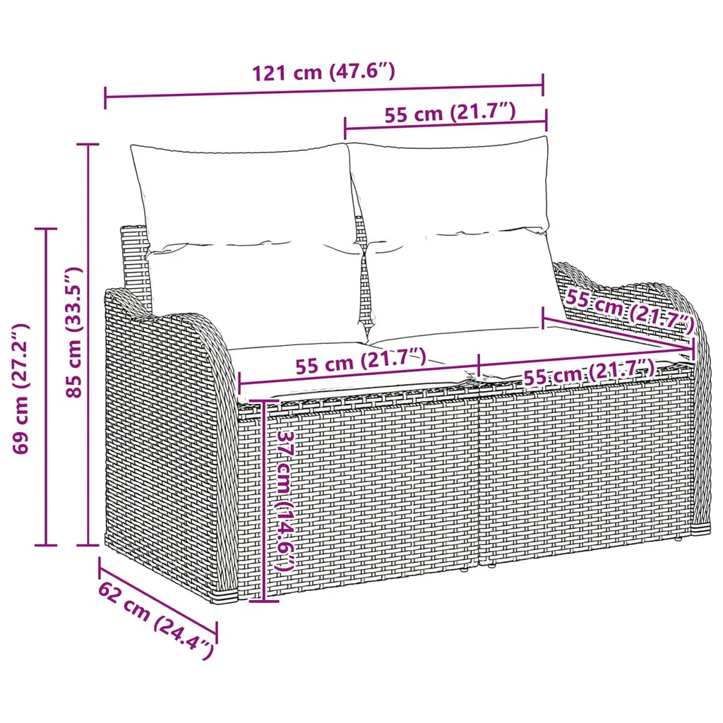 This contemporary garden sofa set is made for those who want to enjoy the outdoors in style and comfort. The pieces showcase a modern aesthetic with clean lines and functional design, making it perfect for any garden or patio setup. Great for spring or summer gatherings, this sofa set is not just good-looking but also built to handle the elements. Poly Rattan Build: The sofa set is made from durable poly rattan, known for being tough against the elements and its elegant woven texture. This material is UV-resistant, so it’s ideal for outdoor use since it won’t fall apart under direct sunlight. Plus, poly rattan is lightweight, making it easy to rearrange for a fresh outdoor setup.Included Components: The set includes one center seat, two arm sofas, three seat cushions, and three back cushions. Each piece is designed for comfort, with cushions providing extra coziness for those long outdoor lounging sessions. These components create a complete seating arrangement that’s both comprehensive and inviting.Height-Adjustable Tabletop: Change up your outdoor experience with a tabletop that shifts smoothly from a coffee table to a dining table. Whether you're enjoying a morning brew or throwing a summer barbecue, this adaptable feature offers convenience and versatility for your outdoor entertaining.Hidden Storage: The set comes with smartly integrated storage compartments, perfect for tucking away cushions, throws, or other outdoor essentials when not in use. This thoughtful feature ensures your outdoor area stays clutter-free, maximizing the space for fun and relaxation.Easy Maintenance: Made for simple care, the sofa set is easy to keep clean. Just wipe it down with a damp cloth and cover it when not in use for added longevity. Routine upkeep is a breeze, ensuring your furniture stays in great shape all year round.