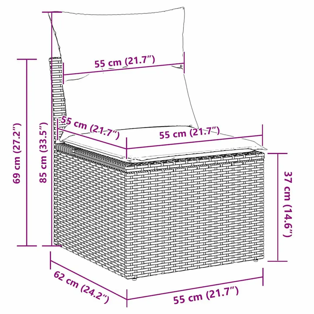 This contemporary garden sofa set is made for those who want to enjoy the outdoors in style and comfort. The pieces showcase a modern aesthetic with clean lines and functional design, making it perfect for any garden or patio setup. Great for spring or summer gatherings, this sofa set is not just good-looking but also built to handle the elements. Poly Rattan Build: The sofa set is made from durable poly rattan, known for being tough against the elements and its elegant woven texture. This material is UV-resistant, so it’s ideal for outdoor use since it won’t fall apart under direct sunlight. Plus, poly rattan is lightweight, making it easy to rearrange for a fresh outdoor setup.Included Components: The set includes one center seat, two arm sofas, three seat cushions, and three back cushions. Each piece is designed for comfort, with cushions providing extra coziness for those long outdoor lounging sessions. These components create a complete seating arrangement that’s both comprehensive and inviting.Height-Adjustable Tabletop: Change up your outdoor experience with a tabletop that shifts smoothly from a coffee table to a dining table. Whether you're enjoying a morning brew or throwing a summer barbecue, this adaptable feature offers convenience and versatility for your outdoor entertaining.Hidden Storage: The set comes with smartly integrated storage compartments, perfect for tucking away cushions, throws, or other outdoor essentials when not in use. This thoughtful feature ensures your outdoor area stays clutter-free, maximizing the space for fun and relaxation.Easy Maintenance: Made for simple care, the sofa set is easy to keep clean. Just wipe it down with a damp cloth and cover it when not in use for added longevity. Routine upkeep is a breeze, ensuring your furniture stays in great shape all year round.