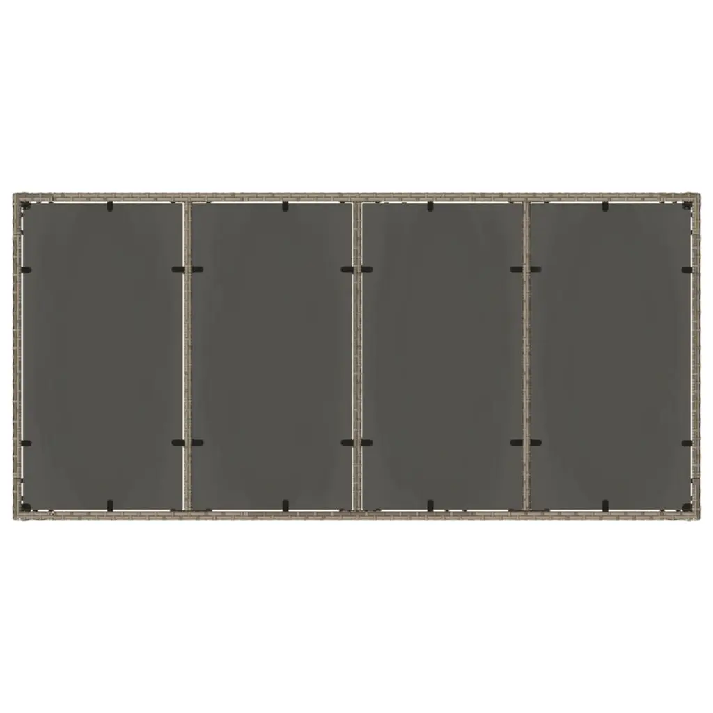 This Rectangular Outdoor Garden Dining Table is a must-have for your outdoor area, mixing grace with function to create a welcoming dining spot. The table has a spacious glass top, perfect for enjoying meals outside and making it a great hangout for family and friends in the garden or on the patio. Robust Frame: Strong powder-coated steel legs for stability, built to last through weather and daily use.Elegant Finish: The gray powder-coated finish looks smart while guarding against the elements, ensuring it lasts.Easy Maintenance: A simple wipe with a damp cloth keeps the table looking good without needing harsh cleaners, preserving the beautiful glass finish.Generous Dimensions: Measuring 74.8 in x 35.4 in, the table provides loads of space for food and drinks, making it perfect for outdoor parties or casual family dinners.Versatile Use: Ideal for outdoor dining, this table fits right in gardens, patios, and balconies, adding style while being practical, too.