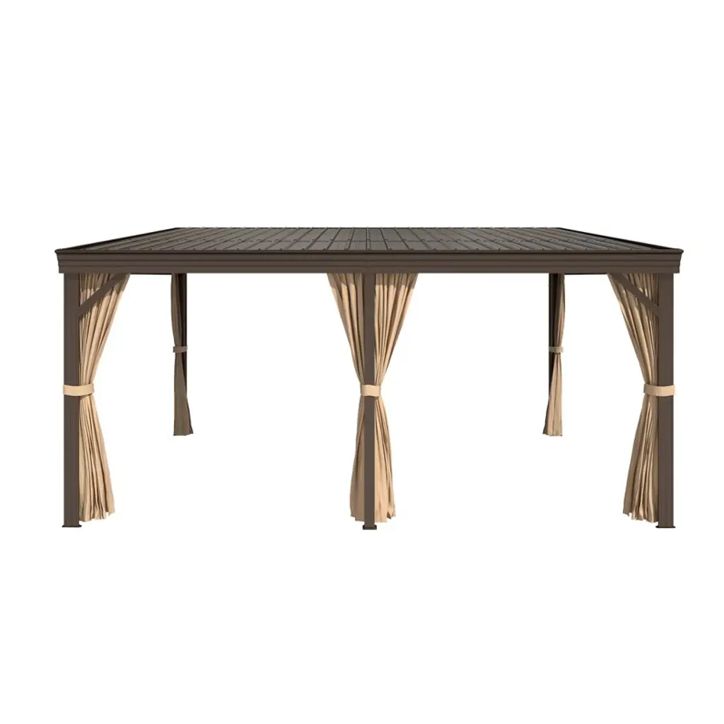 This gazebo features a classic and elegant design, which will cater the perfect sunshade shelter for outdoor events, such as dinners, BBQs, family gatherings along with other activities.The roof, made of fabric with PA coating, guards you from the glare and harmful UV rays of direct sunlight. The gazebo is constructed from strong steel, which is sturdy and durable. The pavilion is delivered with 2 sidewalls.The gazebo can be easily fixed to the ground with the included fixing accessories. The pavilion is easy to assemble.