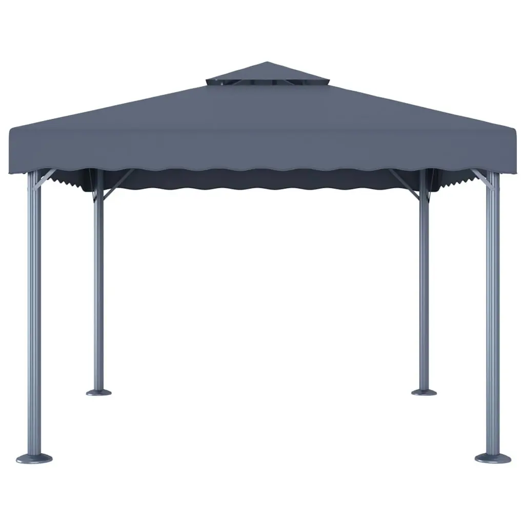 This 118.1 x 118.1 in Anthracite Gazebo is a stylish outdoor solution for any gathering, effortlessly sprucing up your garden or patio. Its classic design and smooth feel create a sophisticated vibe, perfect for dining or serving food, all while giving you plenty of coverage against whatever the weather brings. The double tops of the gazebo enhance airflow, keeping you comfy during outdoor events.Made from high-quality UV-resistant materials, this gazebo helps protect your guests from sun exposure while staying sturdy.With a large 118.1 in x 118.1 in design, it’s perfect for gatherings, dining setups, and outdoor parties.The powder-coated aluminum and steel frame resists rust, ensuring it lasts even in rough weather.Designed for outdoor use, this gazebo adds a stylish touch to any garden or patio, great for casual summer occasions.