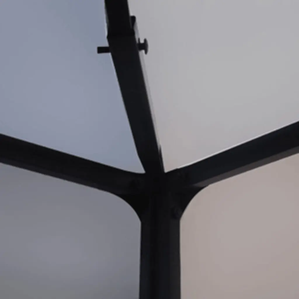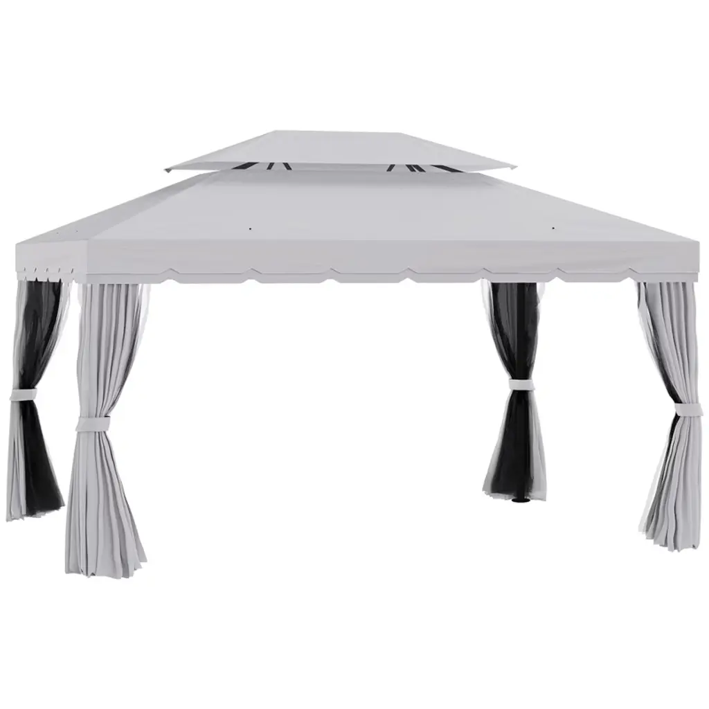 This stylish gazebo has a modern look that brightens up your outdoor area and offers plenty of shelter. With its generous 10x13 foot size, it's perfect for parties, gatherings, or just kicking back in the shade on a sunny day, making it a go-to for summer and spring. Vented Canopy: Keeps the air flowing and cuts down heat, perfect for outdoor fun.Water Resistant: Made from polyester fabric, so it can handle light rain and keep guests dry.Stylish Look: The matte finish and color combo create a welcoming atmosphere for parties.Easy Setup: Designed for two people to assemble with basic tools like screwdrivers.Portable: Lightweight, so you can easily move it around as needed.
