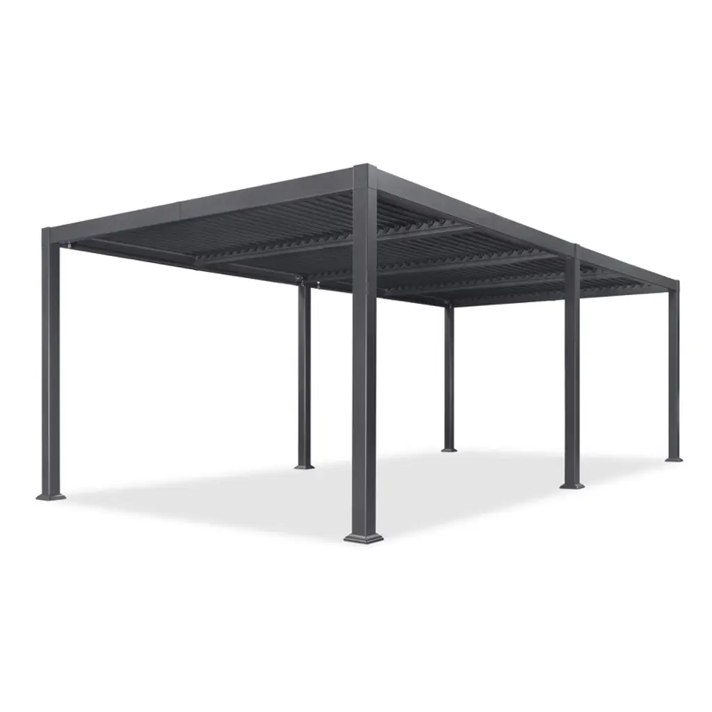 This modern and elegant gazebo looks amazing in your garden, patio, pool and so on. You and your family can enjoy any social gathering with it.This gazebo is made of PA coated fabric, water and dirt repellent. The strong aluminum frame makes the gazebo sturdy and very durable. This gazebo is equipped with an adjustable louvered roof. You can easily rotate and adjust the blinds to the ideal position by simply shaking the hand pole. Open them when you want to enjoy the sun and close them again for shade or shelter you from a bit of rain. This gazebo is a perfect choice for your outdoor activities.NOTE: This product should NEVER be used under bad weather, such as strong wind, heavy rain, snow, storm, etc.Note: This product is not suitable for use as a carport.