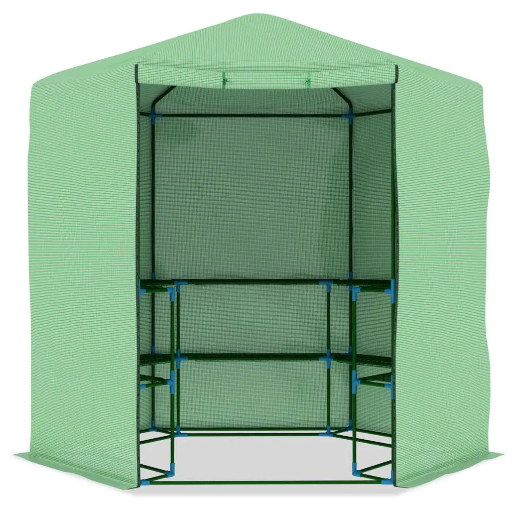 This greenhouse is both a plant paradise and a great garden feature, perfect for garden lovers wanting to keep their plants and veggies safe. Its classic rectangular shape gives you loads of growing space while keeping a modern look that complements any outdoor garden. Built to Last: Made from powder-coated steel, this greenhouse is built to withstand the elements but still light enough to move around your garden.Roomy Design: With dimension of 89.4 in x 87.8 in, it offers loads of space for plants, fruits, and veggies, creating the perfect growing environment.Weather Shield: Designed to keep your plants safe from wind, rain, sun, and birds, ensuring a stable spot for healthy growth even when the weather isn't great.Adjustable Shelves: With multiple shelves to keep your plants organized, these adjustable features make it easy to accommodate different sizes, helping you manage your gardening efforts better.Easy Maintenance: Cleaning it is a breeze; just wipe it down with a damp cloth, and steer clear of extreme weather to keep your greenhouse in top shape.