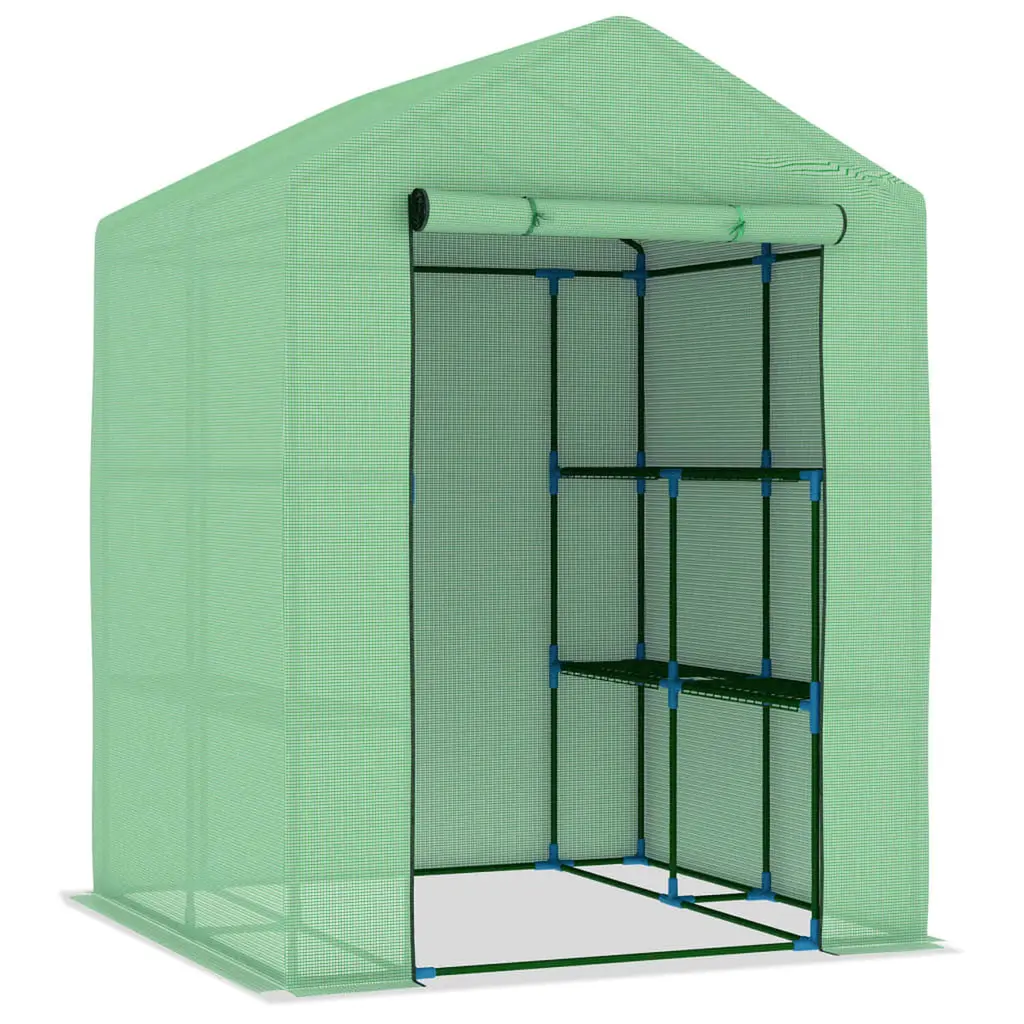 This greenhouse mixes modern looks with practical design, making it a must-have for any garden. Made from tough polyethylene mesh fabric and strong powder-coated steel, it keeps your plants safe and adds to your outdoor style with its roomy dimensions of 56.3 in by 56.3 in and height of 76.8 in. The bright green color fits right into your garden, creating a welcoming spot for your plants. Designed to look good while being useful, it’s a great place for hobby gardeners to grow all sorts of plants, from herbs to veggies, all year round. Ample Space for Growth: With a roomy internal size, this greenhouse offers plenty of room for planting all sorts of plants. It creates a great environment for your garden, encouraging healthy growth all year round.Robust and Long-lasting: Made for durability, it features powder-coated steel that resists corrosion and wear. This means your greenhouse can handle harsh weather and serve you well for years.UV-Resistant Features: The polyethylene mesh fabric in this greenhouse is made to block harmful UV rays. Your delicate plants get the right protection from too much sun, helping them thrive.Flexible Design: Its collapsible style makes it easy to store when you’re not using it, saving space in your garden. Set up or take down depending on your gardening needs, making it super convenient for hobbyists with little outdoor space.Easy Assembly: Built for simple setup, you can assemble this greenhouse with just a screwdriver. Just follow the instructions for the best stability, ensuring your plants are safe and sound.