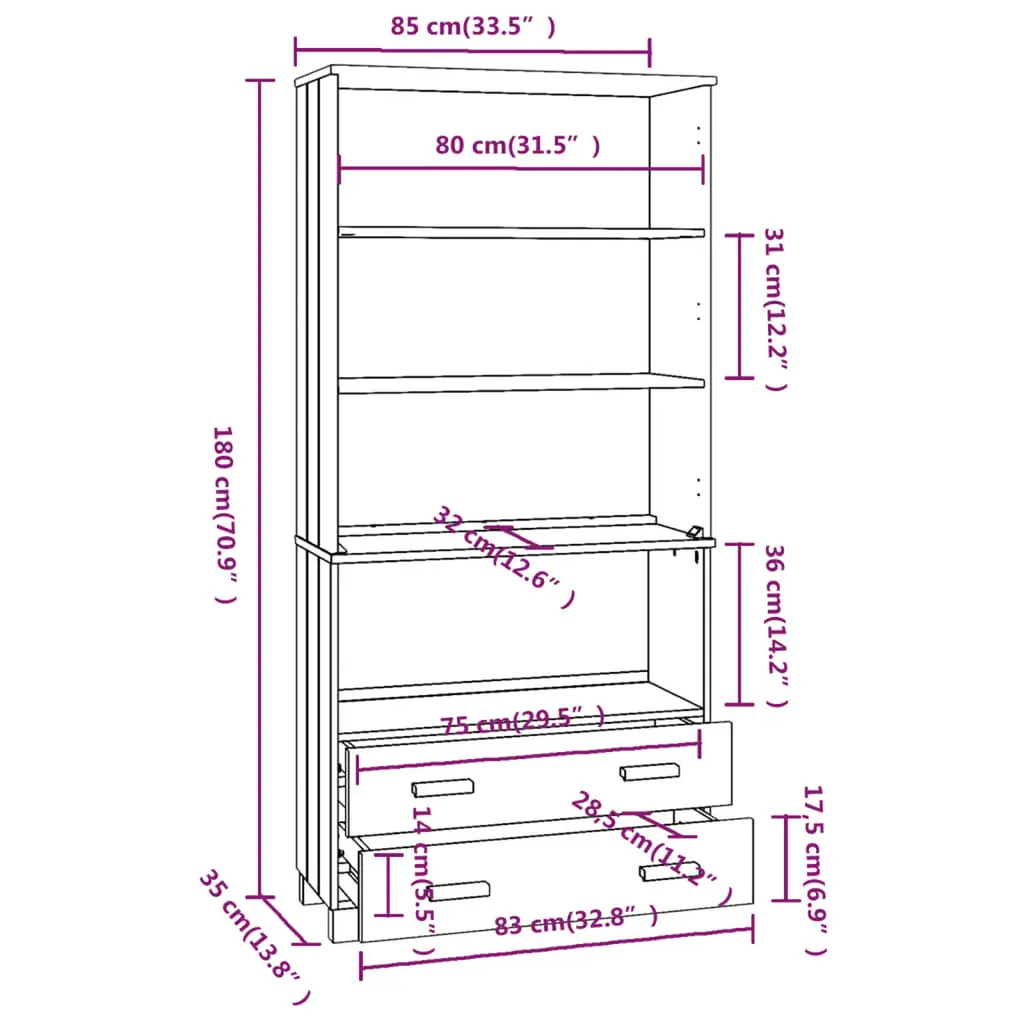 This highboard mixes function and style, perfect for boosting your home decor while offering plenty of storage. The light grey solid pine finish brings a rustic feel that fits effortlessly into both traditional and modern homes, making it a flexible choice for any living room setup. Spacious Storage: This highboard has multiple shelves for keeping books, decor, or kitchen items. It’s practical and helps keep your space tidy, giving you a nice area to relax in.Sliding Doors: With smooth sliding mechanisms, the doors offer easy access while looking great. They won’t get in your way when opened, making it perfect for compact spaces.Stylish Design: Featuring a rustic style, this highboard's natural light grey finish beautifully highlights its wooden frame. The knots and grains in the solid pine give it character, making it more than just a functional storage piece.Durable Materials: Built from solid pine and MDF, this highboard is strong and stable, ready for daily use while keeping its good looks. The oiled finish enhances its charm and protects it from wear over time.Ideal for Multi-use: Its flexible design means it can be a home bar, an entryway console, and more, adapting to your varied needs. Enjoy this highboard anywhere in your home.