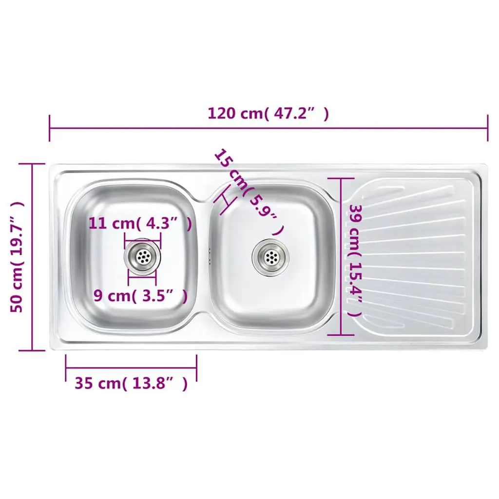 Vidaxl Kitchen Sink Double Basin With Strainer Stainless Steel