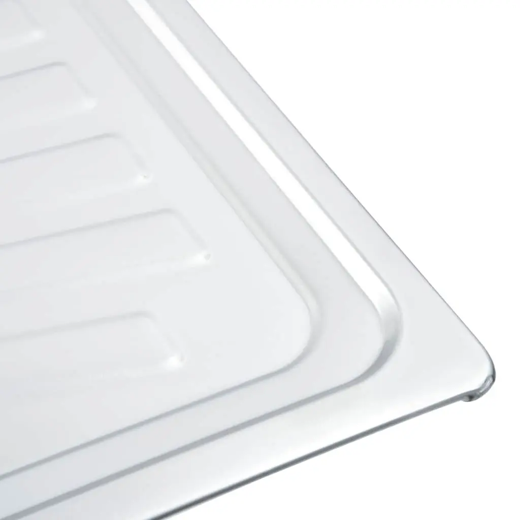 This quality kitchen sink has two sizable basin with an extended drainboard on the side. It is delivered including the strainer and will be a great choice for your kitchen.Made of quality stainless steel, this kitchen sink is highly durable. It is also dirt-repellent and stain proof, thus easy to clean. This kitchen sink is a space saver that will leave your more counter space. The extra-deep basins have ample space for large pans and dishes, and the double feature creates an entirely separate area for you to use. The drainboard will come in very handy not only when washing dishes by hand but also as an extra place for cutting vegetables. The rectangular sink can be assembled with the drainboard either to the left or right. Delivery also includes the strainer.