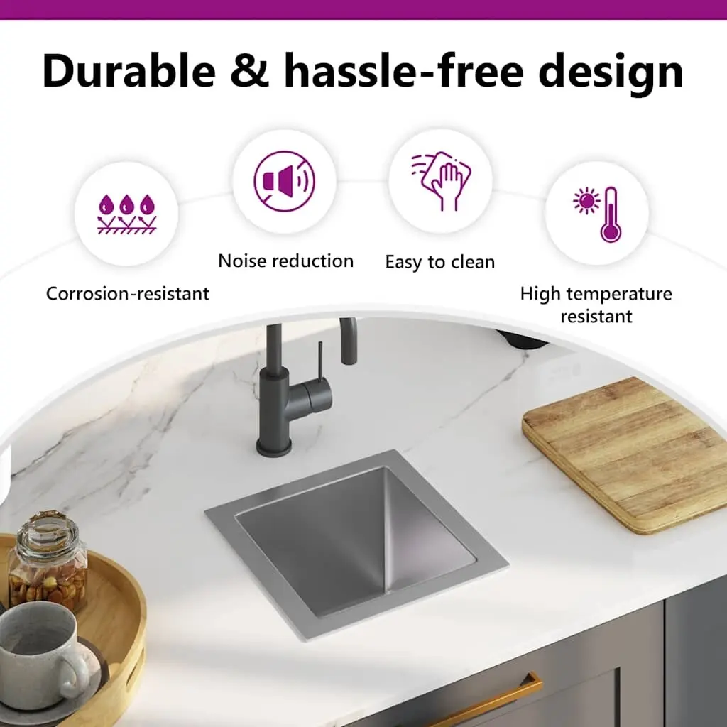 Enjoy the advantage of this kitchen sink with clean contemporary designs. The bowl in silky smooth satin finish will ooze class and sophistication, which will fit any kitchen decor!Combing the best in function and design, this sink is crafted of high-graded handmade stainless steel in anti-condensation paint and lead free. It is sound proofing with the sound-reduction pads. Additionally, the bowl with a unique X-flume design facilitates quick flow, preventing standing water in the bottom of the basin.The sink can be fitted as undermount, flush mount and drop in and you can have it in any way you prefer.
