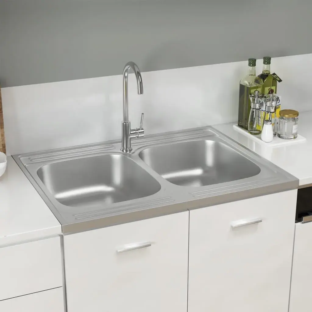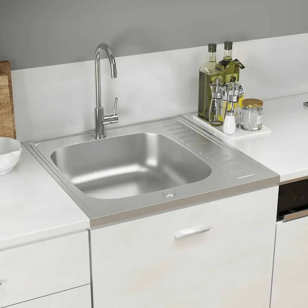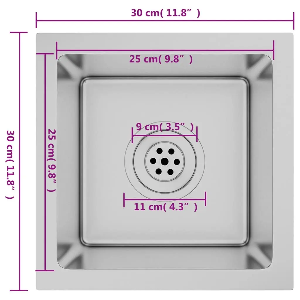 Vidaxl Kitchen Sink With Strainer Top-Mount Stainless Steel - 11.8" X 11.8" X 7.9" - Silver