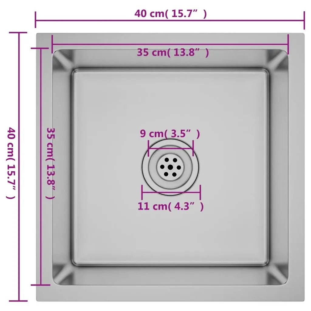 Vidaxl Kitchen Sink With Strainer Top-Mount Stainless Steel - 15.7" X 15.7" X 7.9" - Silver