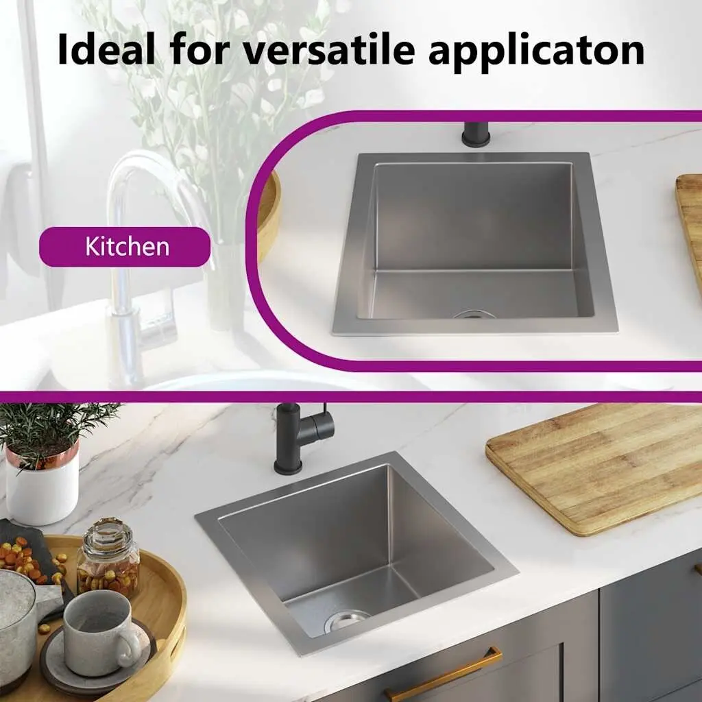 Enjoy the advantage of this kitchen sink with clean contemporary designs. The bowl in silky smooth satin finish will ooze class and sophistication, which will fit any kitchen decor!Combing the best in function and design, this sink is crafted of high-graded handmade stainless steel in anti-condensation paint and lead free. It is sound proofing with the sound-reduction pads. Additionally, the bowl with a unique X-flume design facilitates quick flow, preventing standing water in the bottom of the basin.The sink can be fitted as undermount, flush mount and drop in and you can have it in any way you prefer.