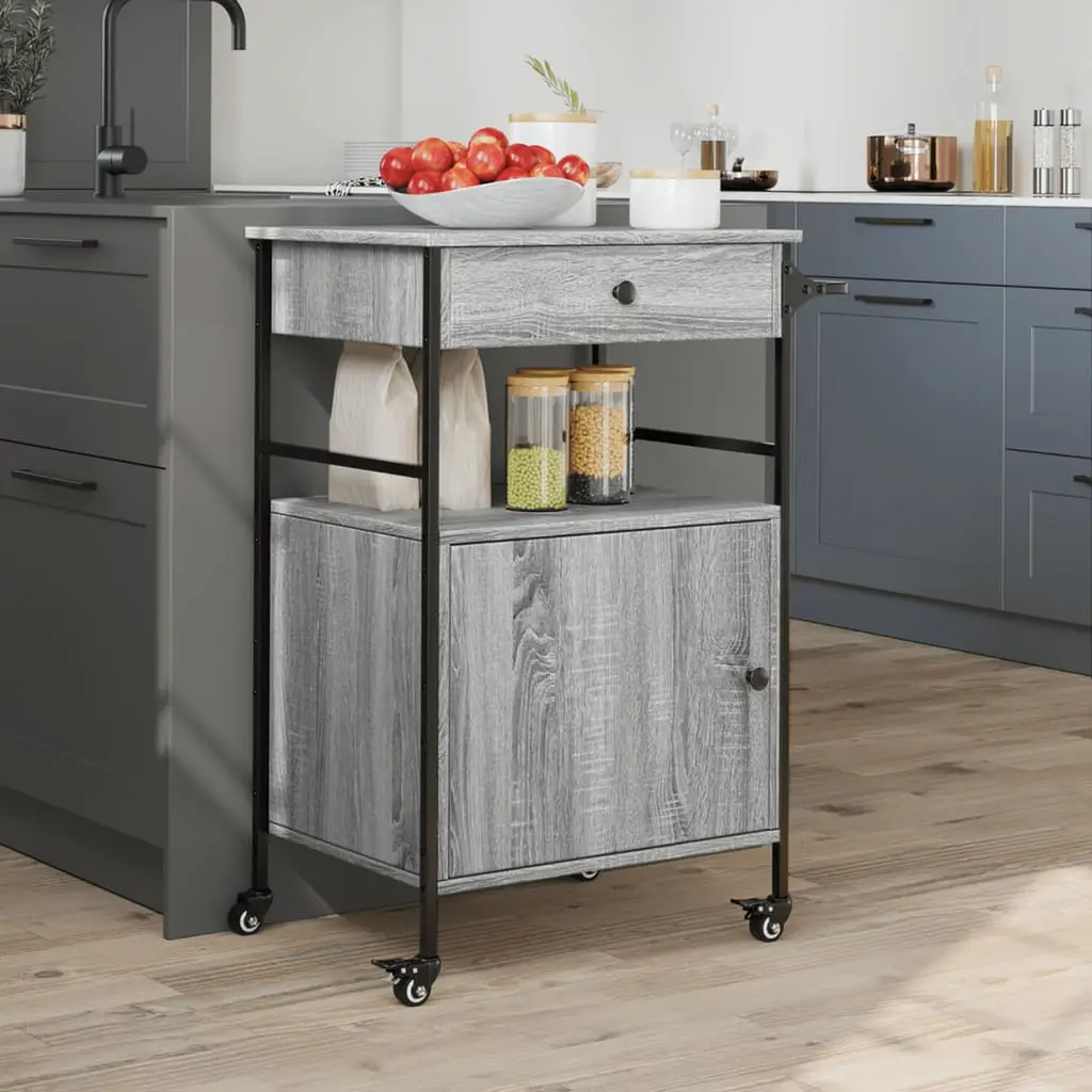 Vidaxl Kitchen Trolley Gray Sonoma 22"x16.9"x35.2" Engineered Wood
