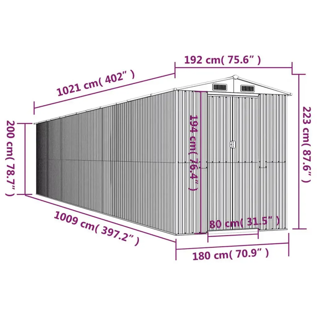 This garden shed gives you plenty of space and a safe spot for all your outdoor essentials, from tools to larger items like lawnmowers. Its modern dark brown finish not only fits right in with your garden decor but also gives you a sturdy space to keep everything organized and away from the weather. Specifications:Color: Brown Material: Metal SteelFinish: Painted Indoor/Outdoor: Outdoor OnlyRoom: GarageCapacity: Roomy enough for things like lawnmowers, hoses, and spadesDimensions: 75.6 x 75.6 x 87.8 in (W x L x H)Brand: vidaXLDelivery Contains: Garden shedAssembly Required: YesSKU: 3147470EAN: 8720845582302