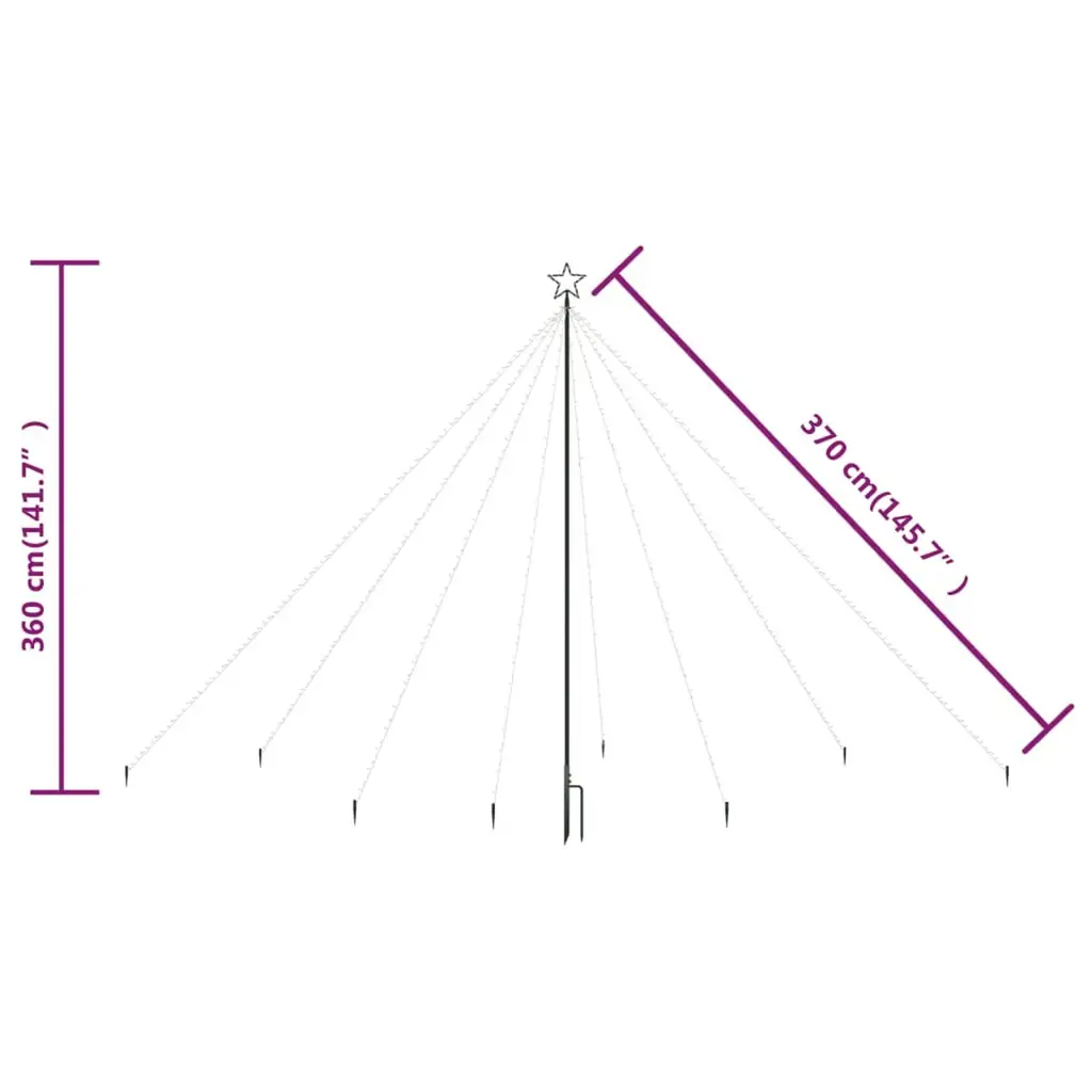 This stunning multicolor LED Christmas tree stands at an impressive height of 11.8ft, making it an extraordinary addition to any festive celebration. Perfect for both indoor and outdoor spaces, this cone-shaped tree offers a spectacular display with its vibrant lights, creating a joyful ambiance that enhances the holiday spirit wherever it is used. Dynamic Lighting: This Christmas tree features eight different lighting effects that change colors and patterns over time. This lets you create various atmospheres, whether you want a soft glow or a vibrant show. Durable Design: Made from high-quality, water-resistant materials, the tree is built to survive the elements when used outdoors. Its sturdy build ensures it stays looking good all holiday long. Large Capacity: With 576 LEDs, this tree provides a bright and eye-catching display that people will notice from afar. The brightness and vibrancy will cheer up guests and passersby, turning your home into a festive wonderland. Indoor/Outdoor Use: This pre-lit tree can be enjoyed both inside and outside. Its solid construction and IP44 rating make it perfect for patios, living rooms, or any holiday gathering, so everyone can bask in its beauty. Easy Setup: Comes with a support post and ground stakes, making it a breeze to put up. The long electric cable gives you flexibility in where you place it, so you can set it up just about anywhere.