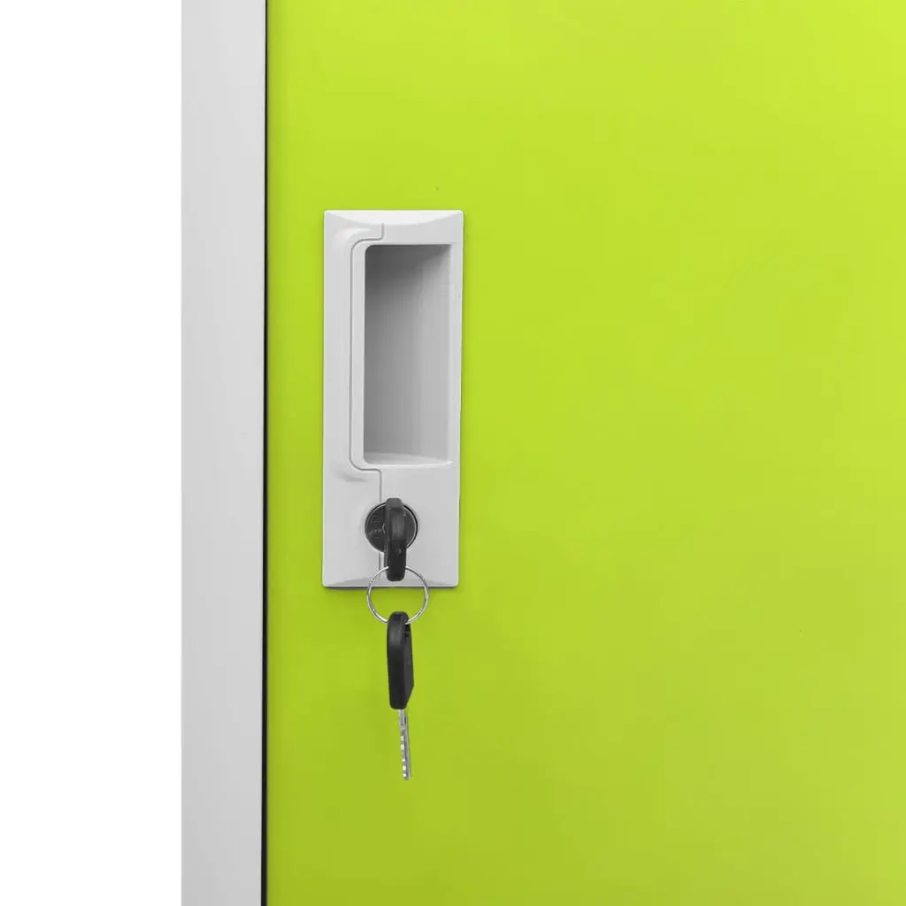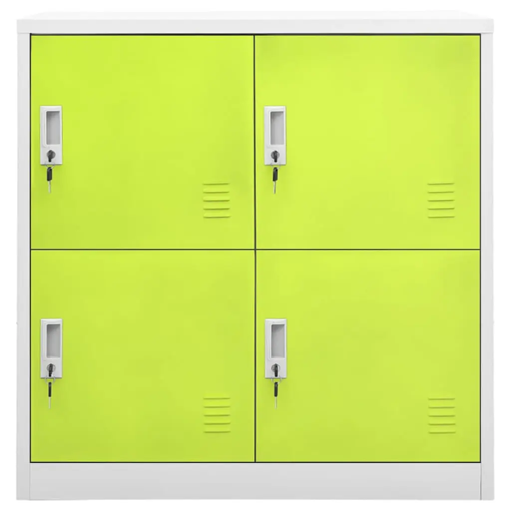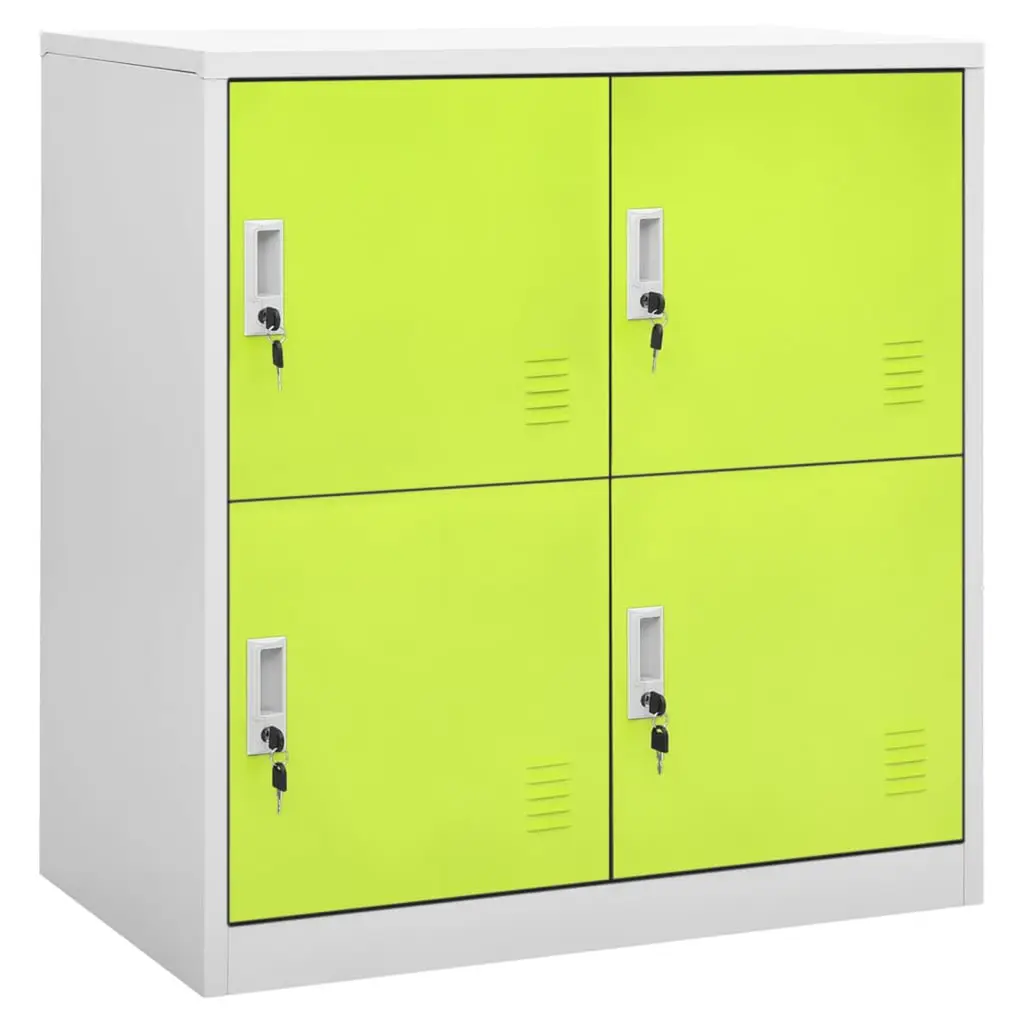 This modern locker cabinet set combines function and style, perfect for any office or school. With a cool light grey and green finish, these lockers not only provide secure storage but also fit in nicely with modern decor, making everything look tidy. Secure Storage: Each locker comes with tough cam locks, keeping your things safe and handy whenever you need them. Sturdy Construct: Made from quality steel, this locker system makes storage easy while being smooth to clean. Versatile Use: Perfect for schools and offices, these cabinets can store files, sports gear, or personal items. Ample Space: Four individual lockers offer loads of room for everything from books to personal belongings. Adjustable Features: The adjustable shelves let you mix things up based on what you need to store.