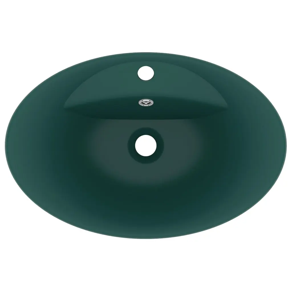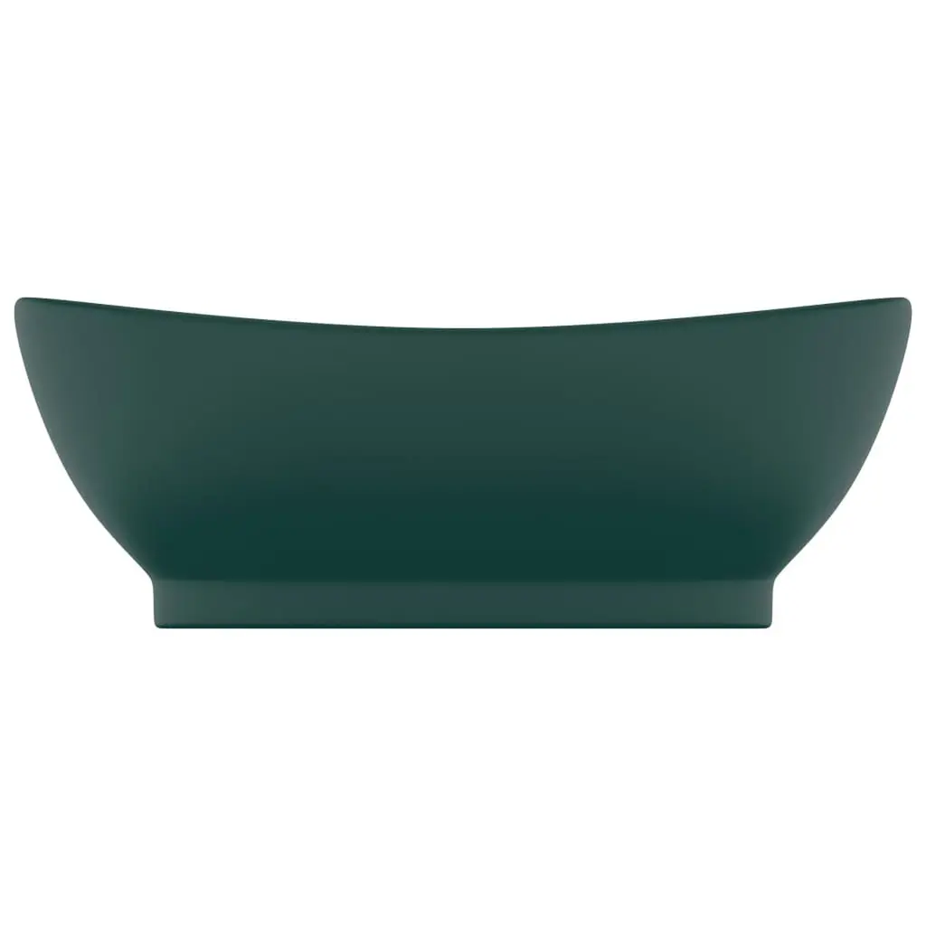 Vidaxl Luxury Basin Overflow Oval Matt Dark Green 23.0x15.4" Ceramic